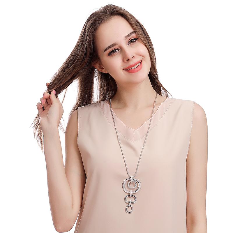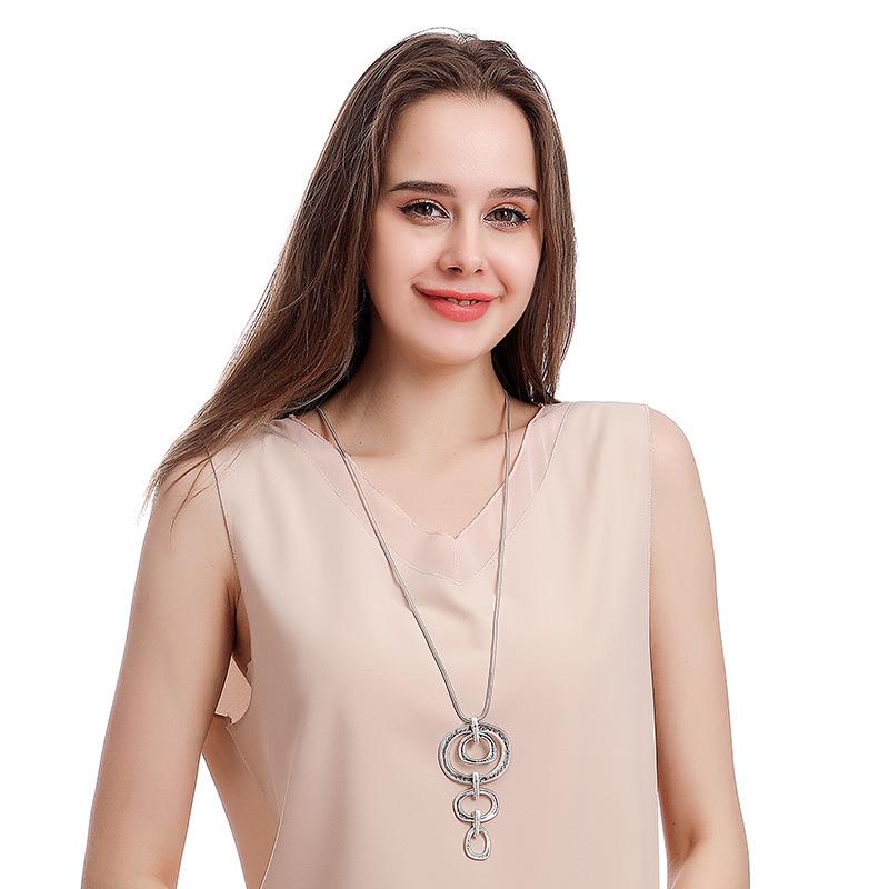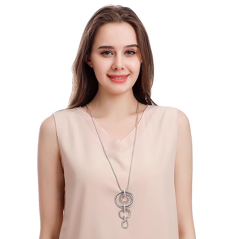 Collar largo retro europeo y americano de alta calidad con colgante geométrico y cadena de lana metálica para mujer, gran venta transfronteriza en Amazon.