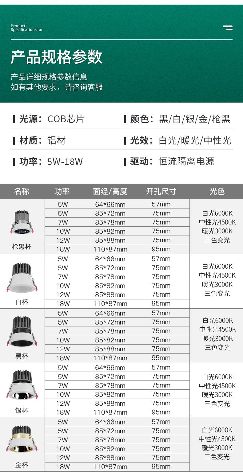 White cup 5w opening 55mm surface diameter 64mm, White cup 7w opening 75mm surface diameter 85mm, White cup 12...
