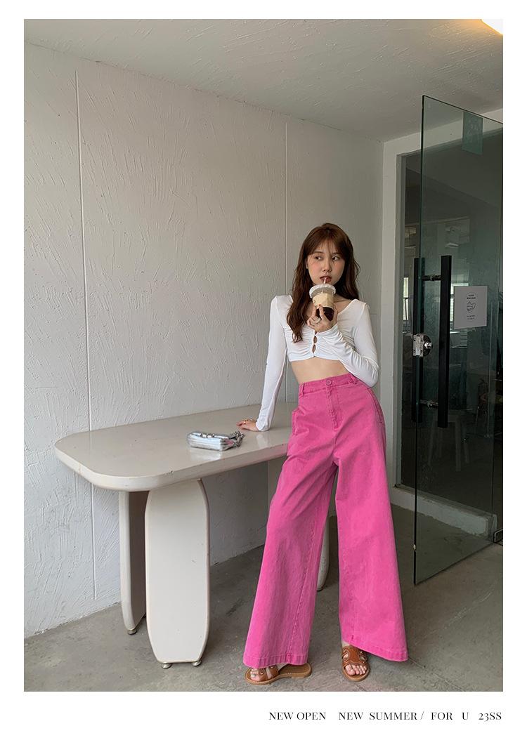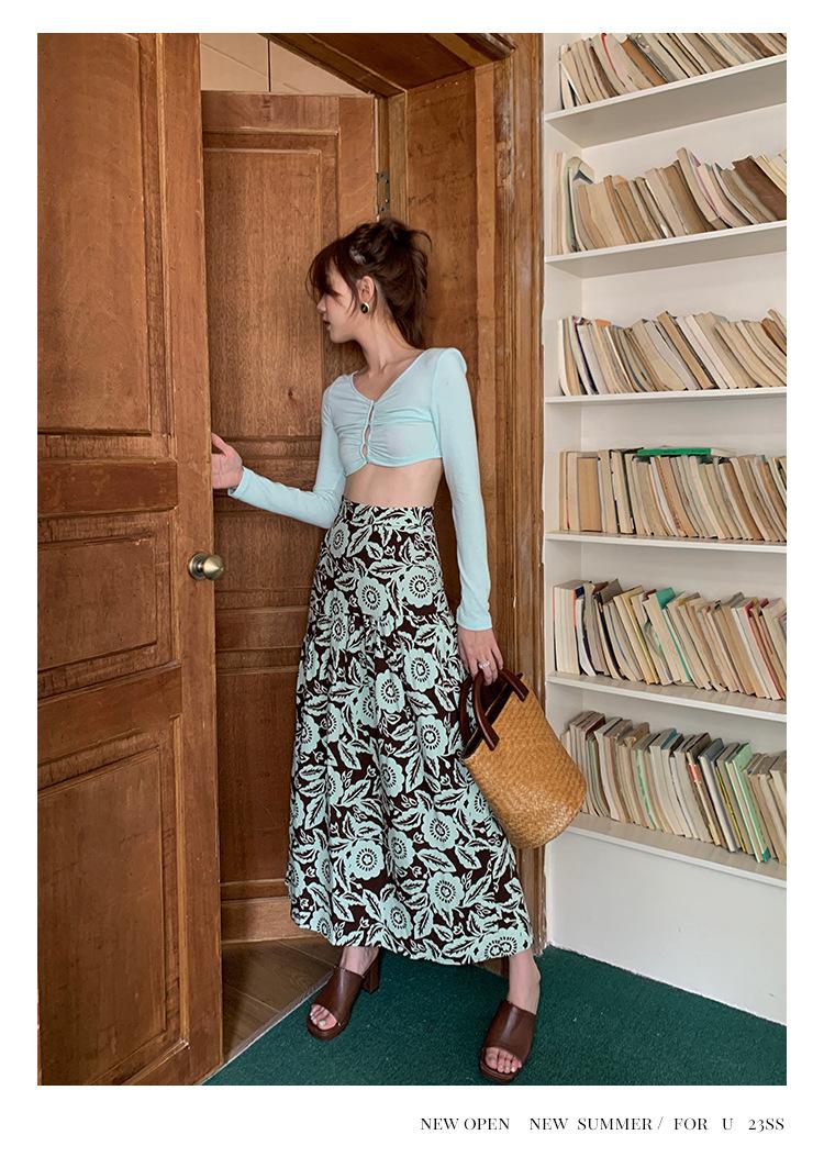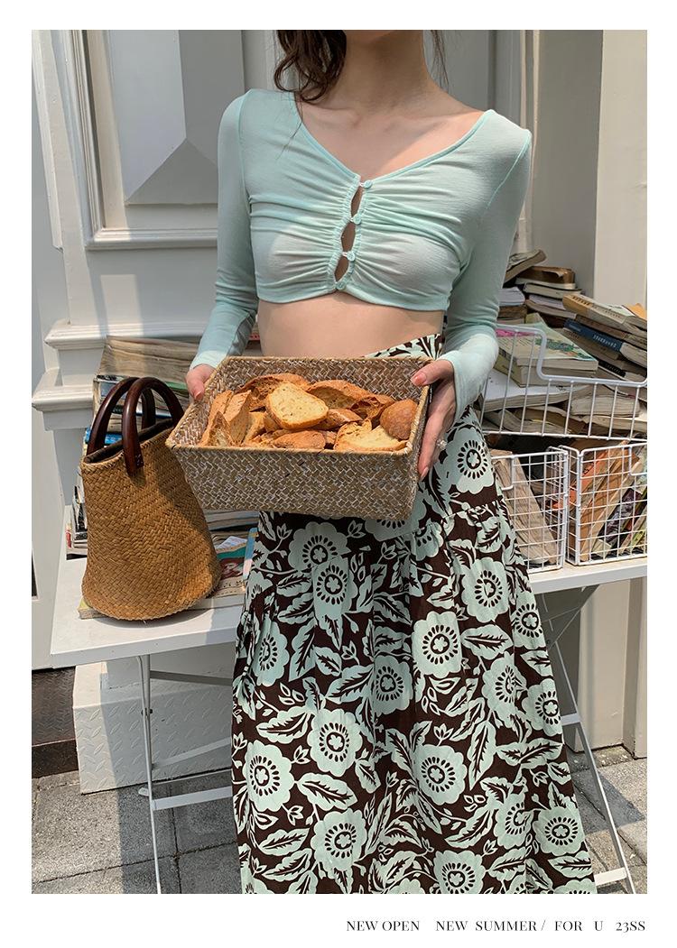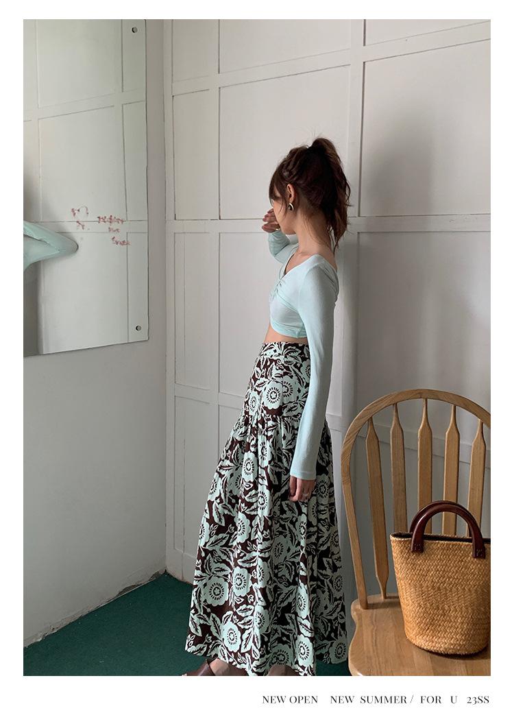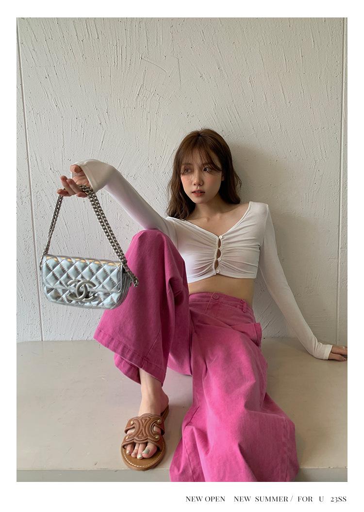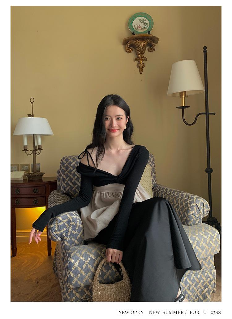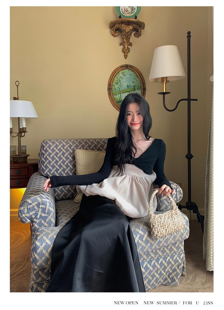 Liquidación Trece Líneas No Retornable Estilo Dulce y Picante Camisa Sexy Delgada con Escote en V Profundo para Mujer Verano 2023 Exterior Tejido de Manga Larga 82317