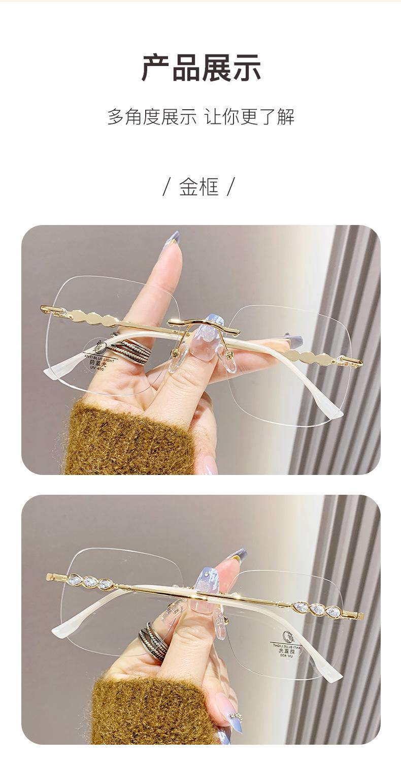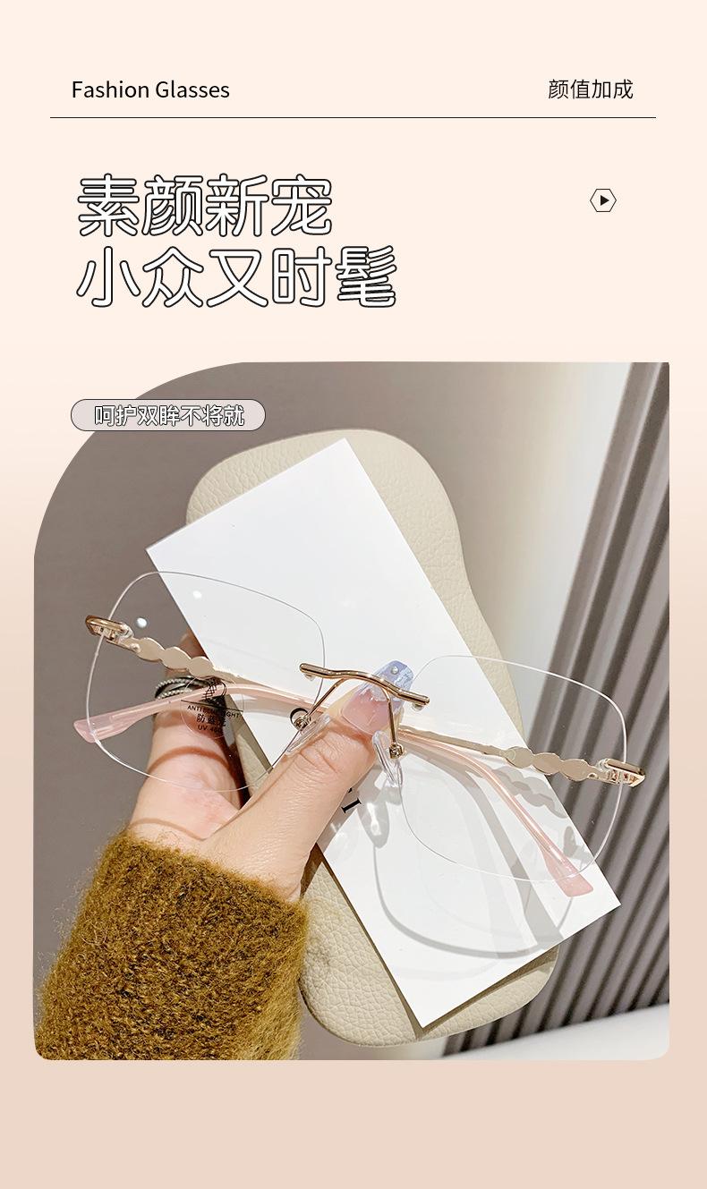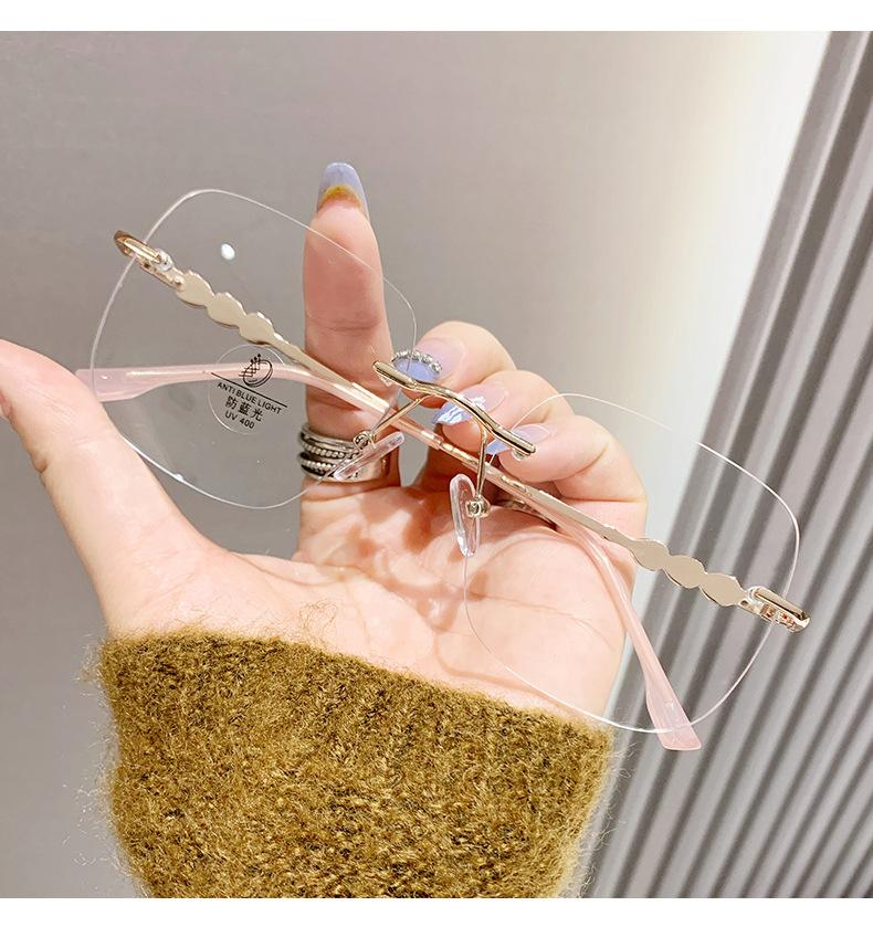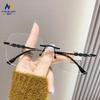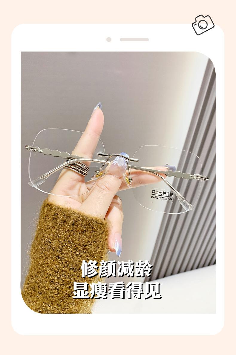 Gafas de sol sin montura para mujer, redondas, de gran tamaño, planas y adelgazantes, con montura antimiopía y protección contra la luz azul.