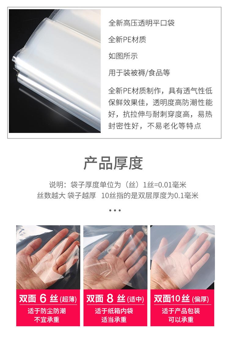 Bolsa de plástico de bolsillo plano, bolsa de película de PE de alta presión, bolsa de almacenamiento transparente de gran tamaño, bolsa de embalaje engrosada, venta al por mayor