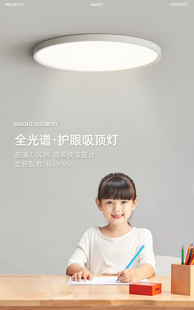 Lámpara de techo de protección ocular de espectro completo ultrafina redonda sala de estar estudio inteligente aprendizaje estudiantil especial habitación infantil lámpara de dormitorio
