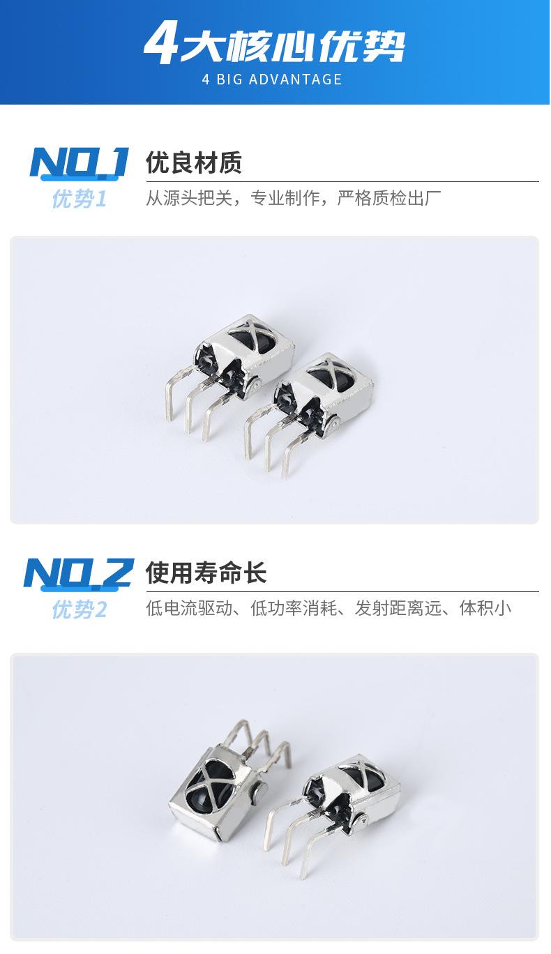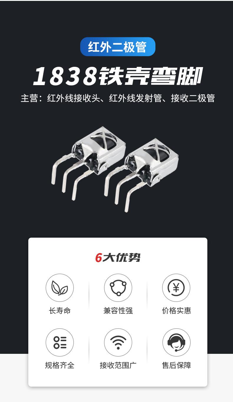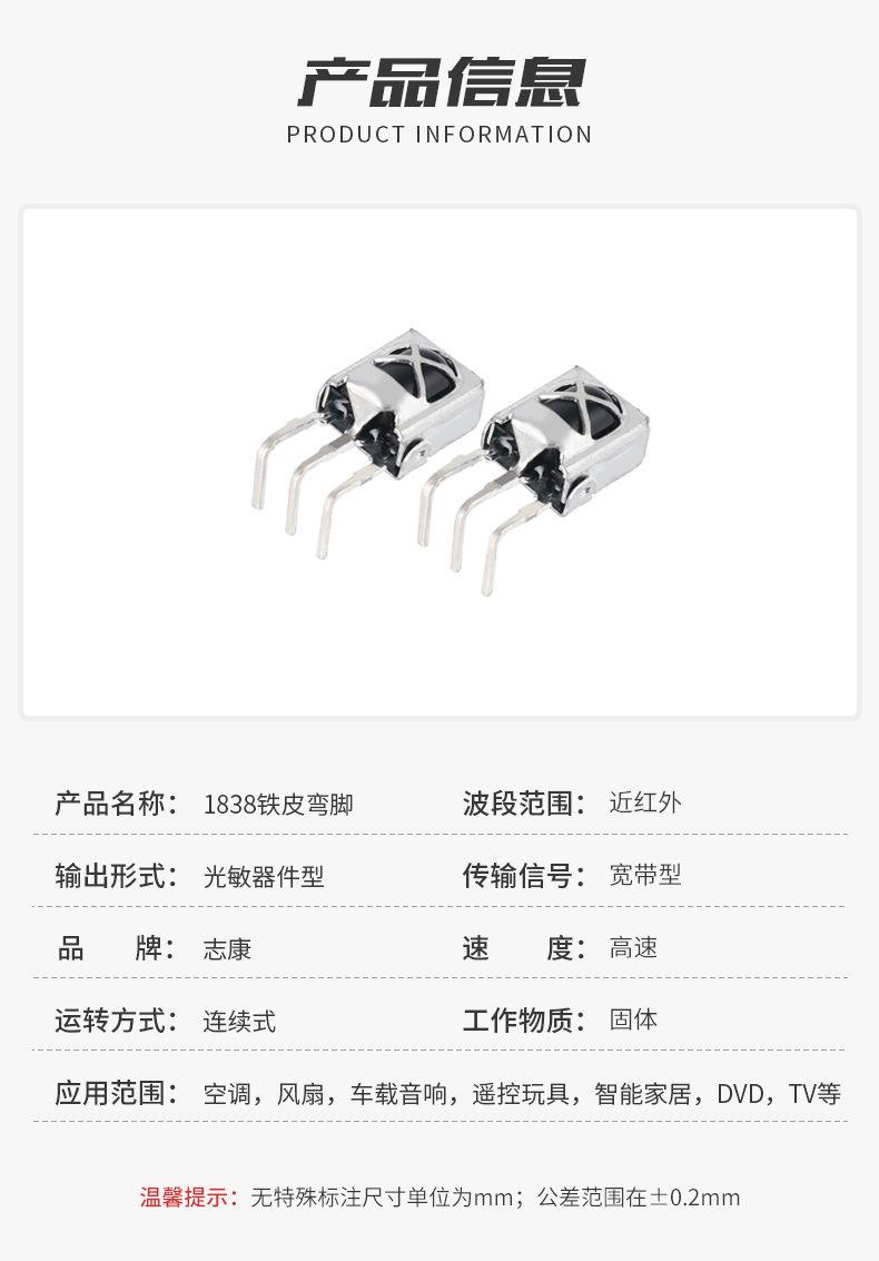 Cabezal receptor infrarrojo 1838 con carcasa de hierro, patas curvas, blindaje de control remoto de TV antiinterferencias, tubo receptor infrarrojo