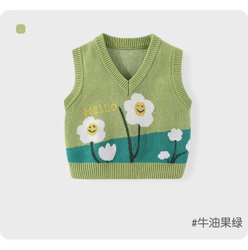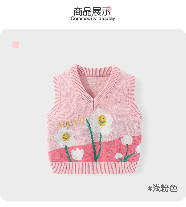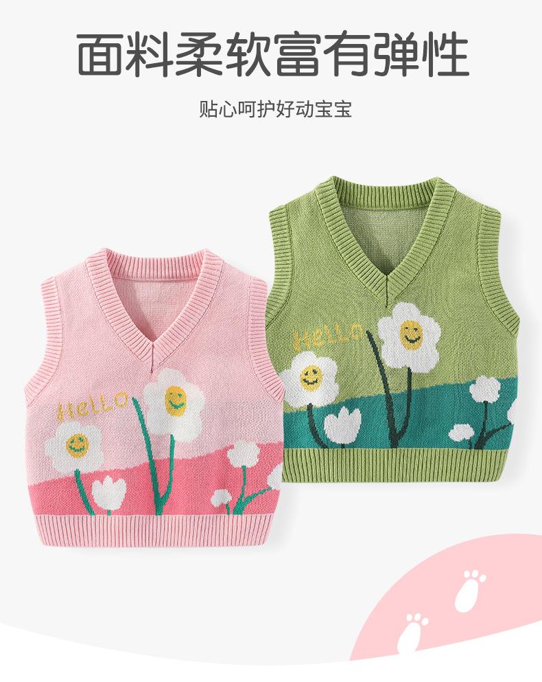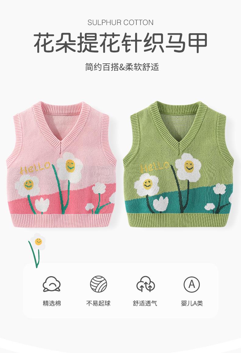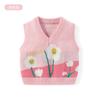 Chaleco para Niñas de Algodón Puro Jacquard de Flores Pequeñas Otoño Cuello en V Tipo Chaleco para Bebé Chaleco Suéter Suave de Punto para Niñas