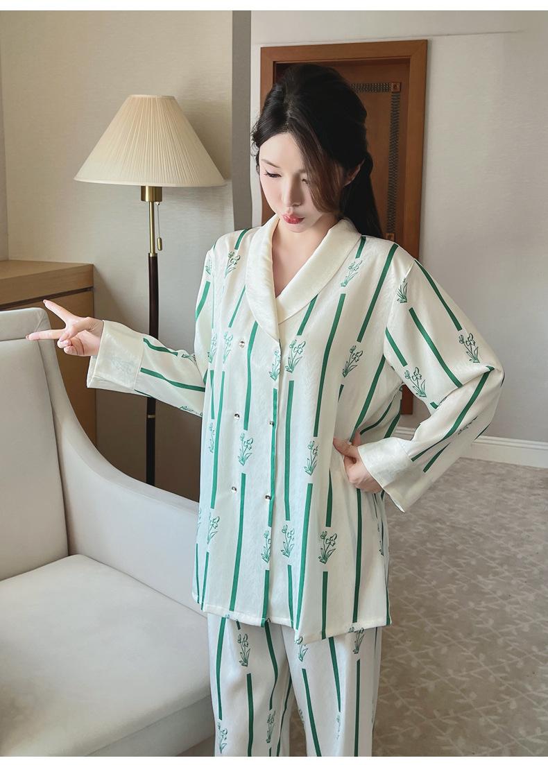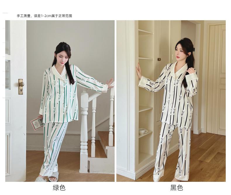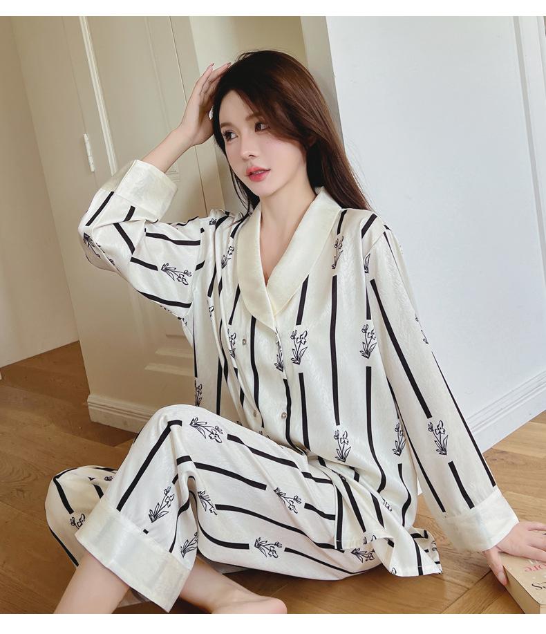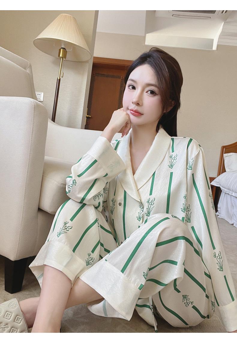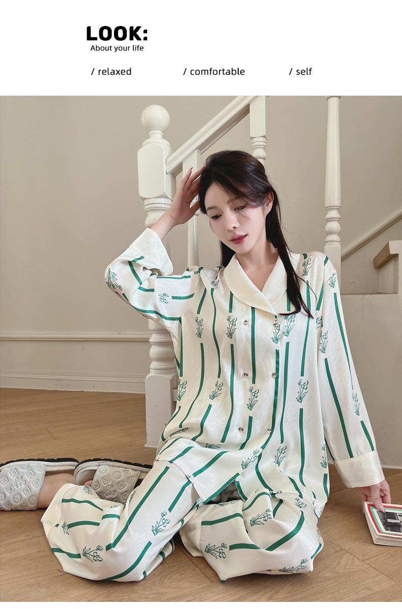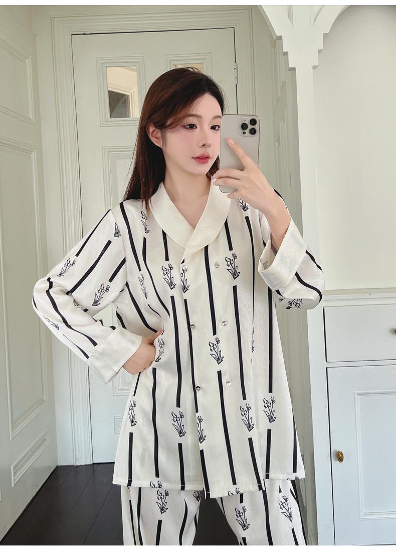 Cardigan de manga larga de Seda Artificial 2024 Primavera y Otoño patrón de espiga ropa de casa pijama de dama traje de mujer comercio exterior transfronterizo