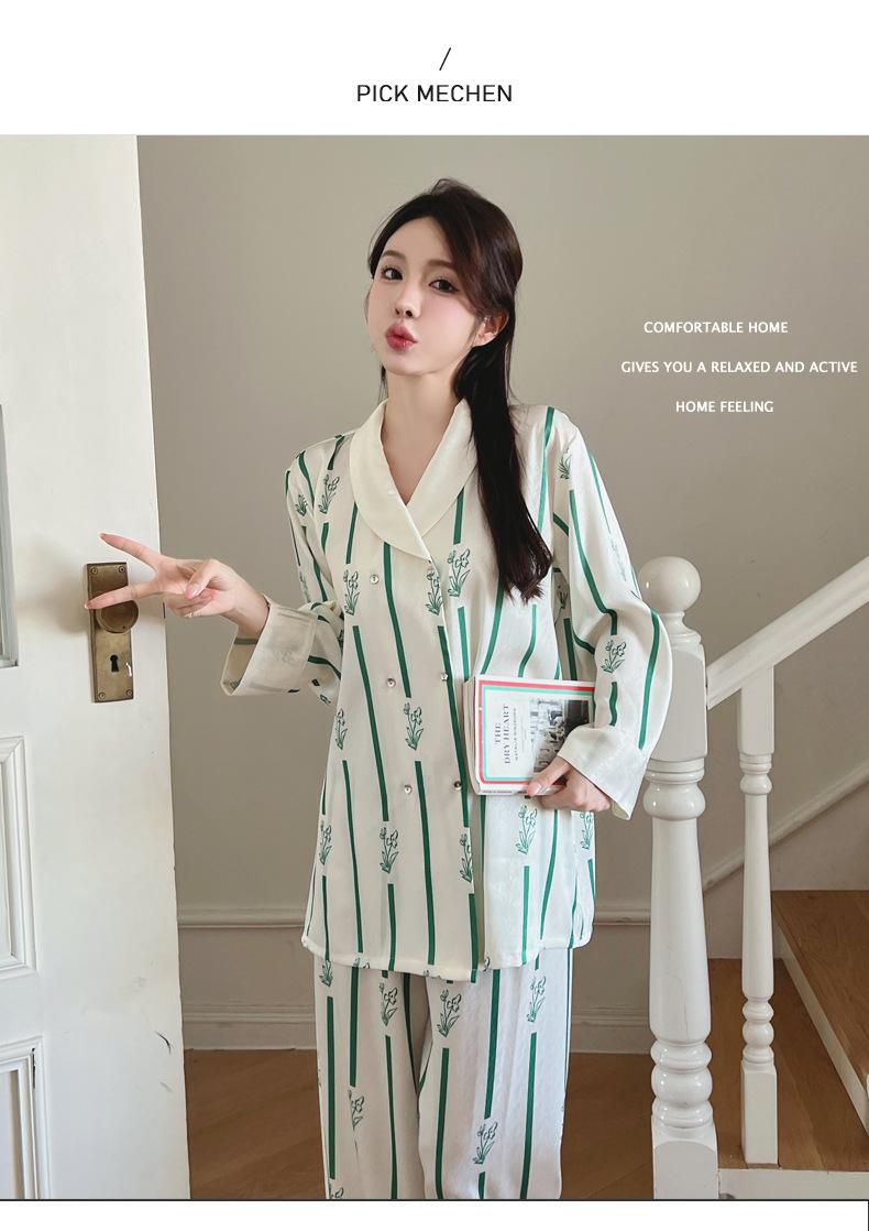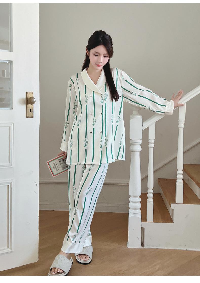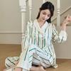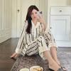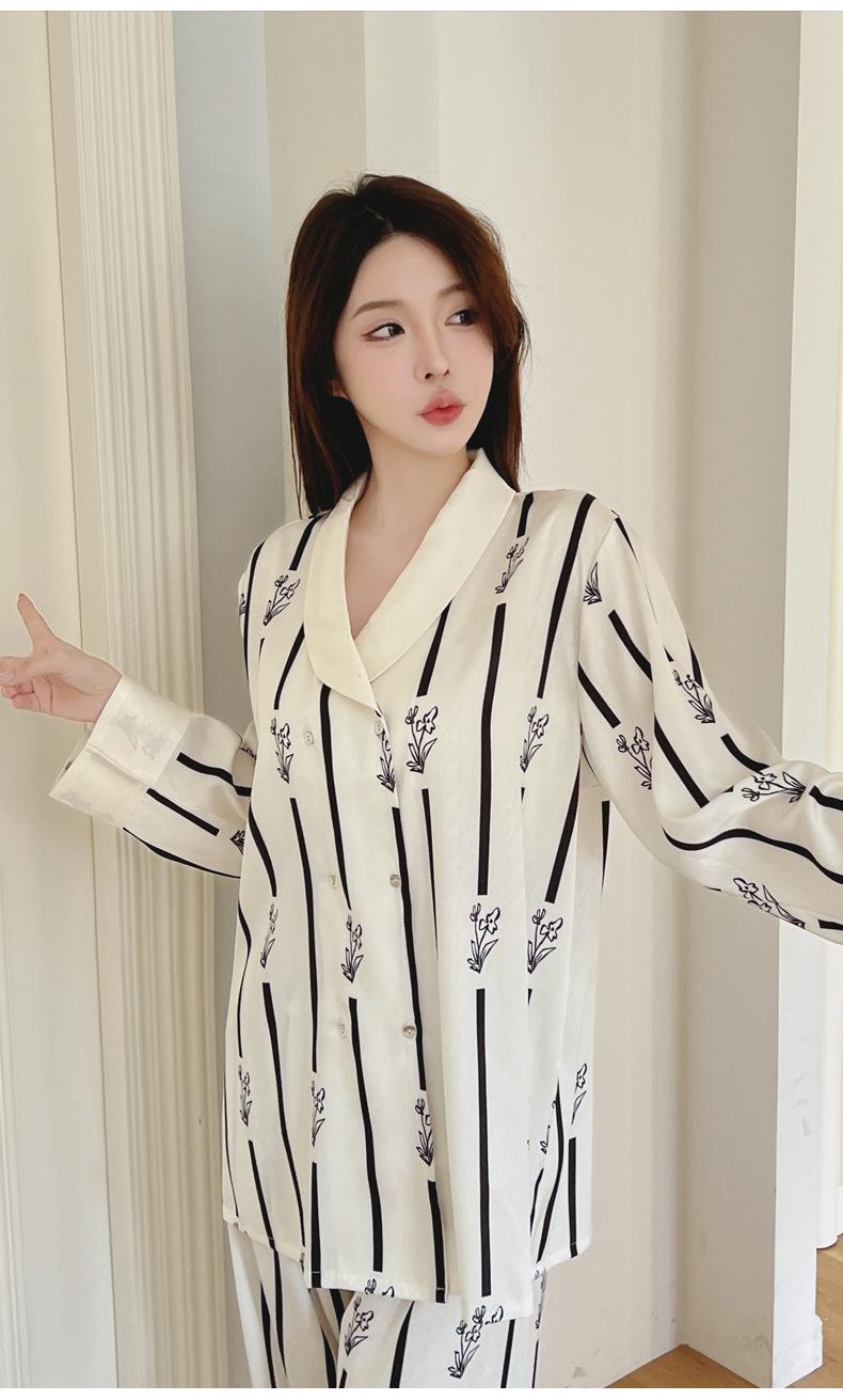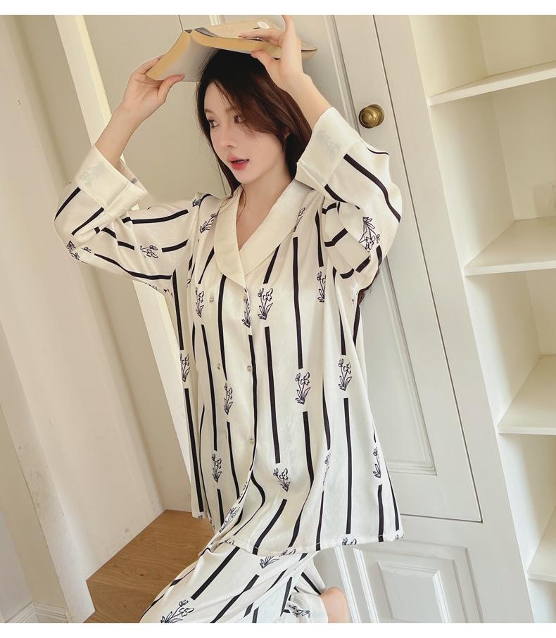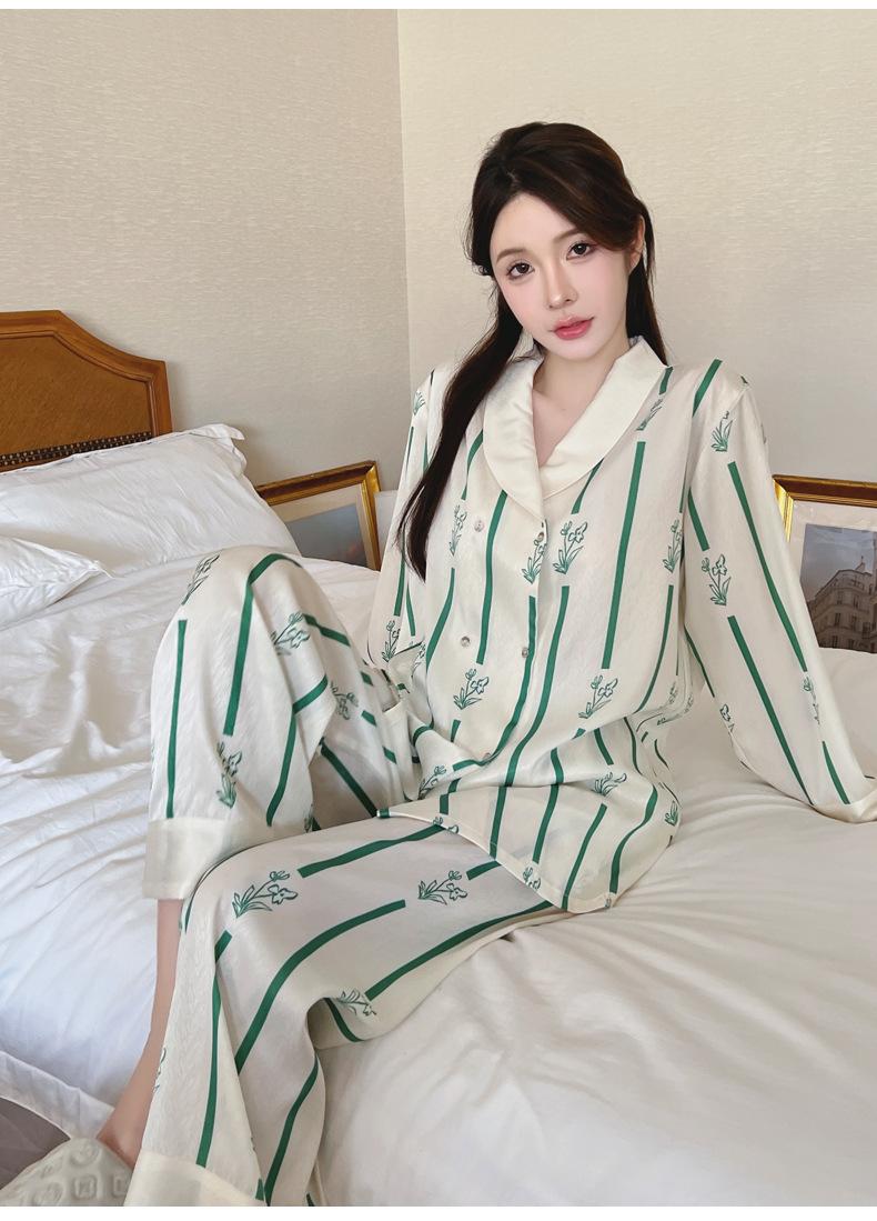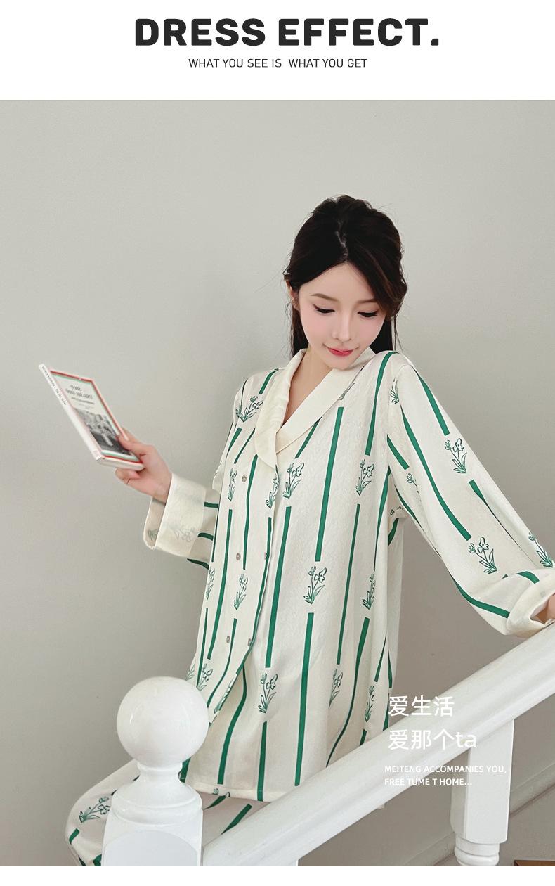 Cardigan de manga larga de Seda Artificial 2024 Primavera y Otoño patrón de espiga ropa de casa pijama de dama traje de mujer comercio exterior transfronterizo