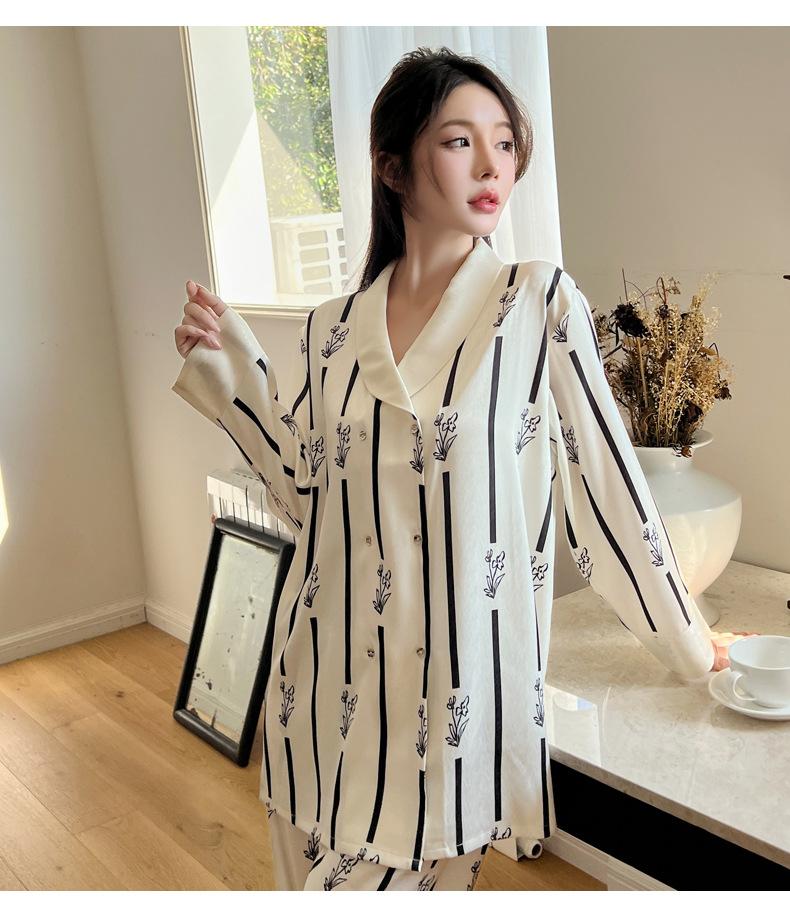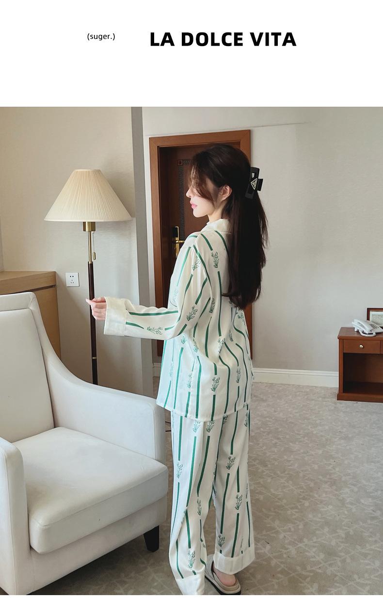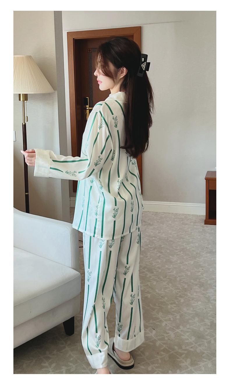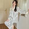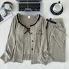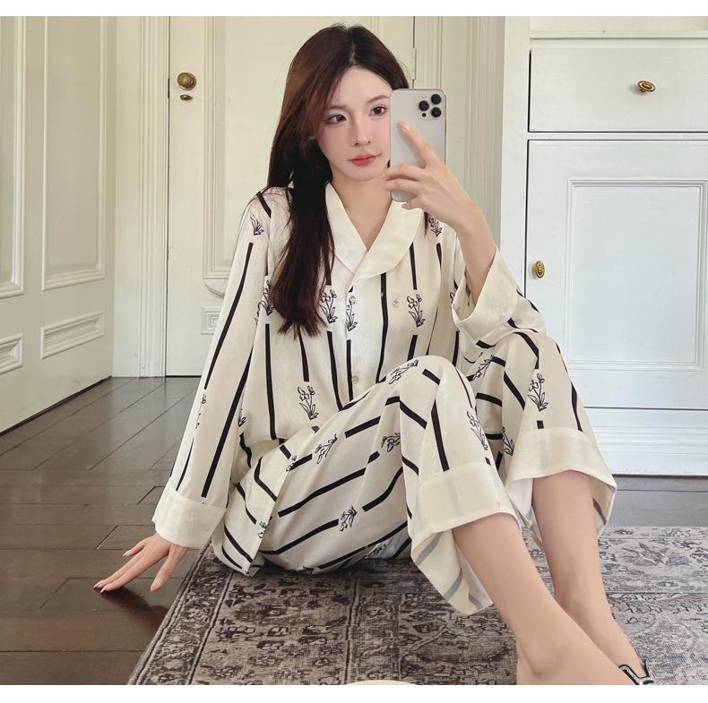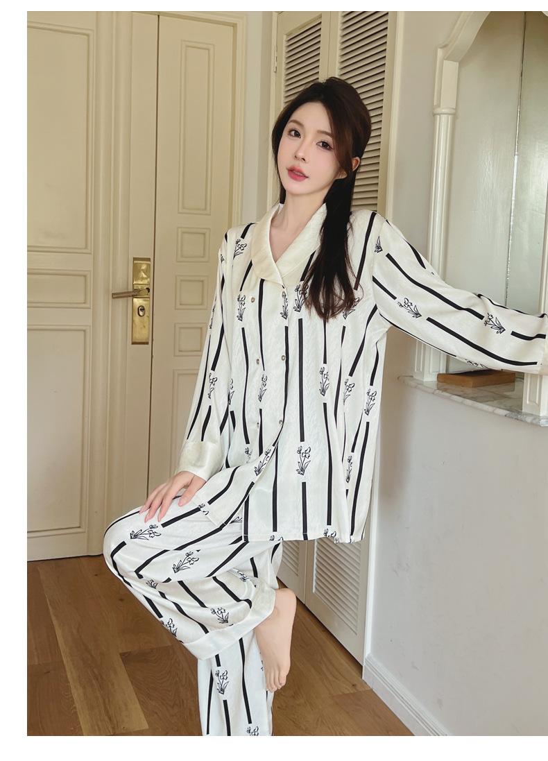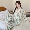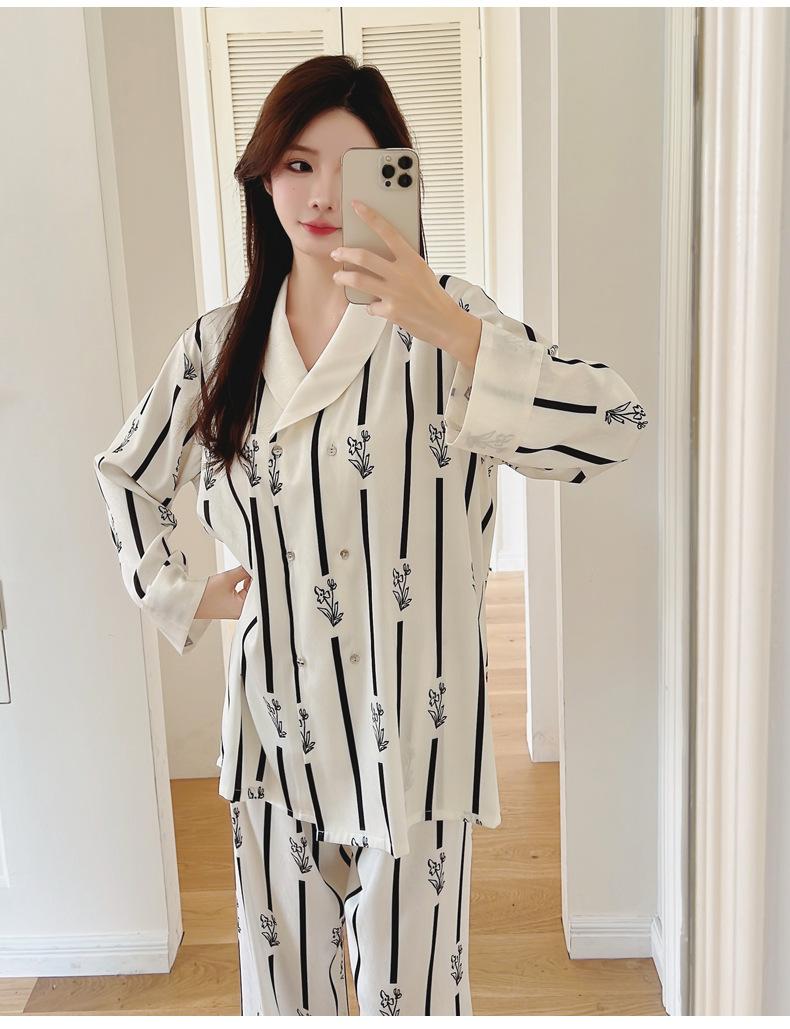 Cardigan de manga larga de Seda Artificial 2024 Primavera y Otoño patrón de espiga ropa de casa pijama de dama traje de mujer comercio exterior transfronterizo