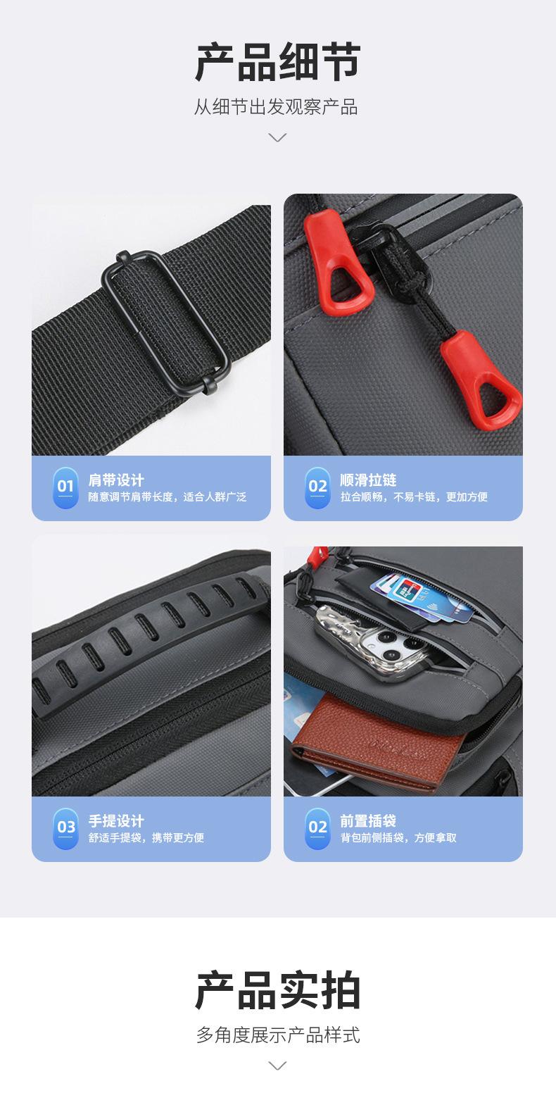 Nueva Bolsa Cruzada para Hombre Mochila Casual para Exteriores Sencilla para Negocios Portátil Repelente al Agua Multicapa
