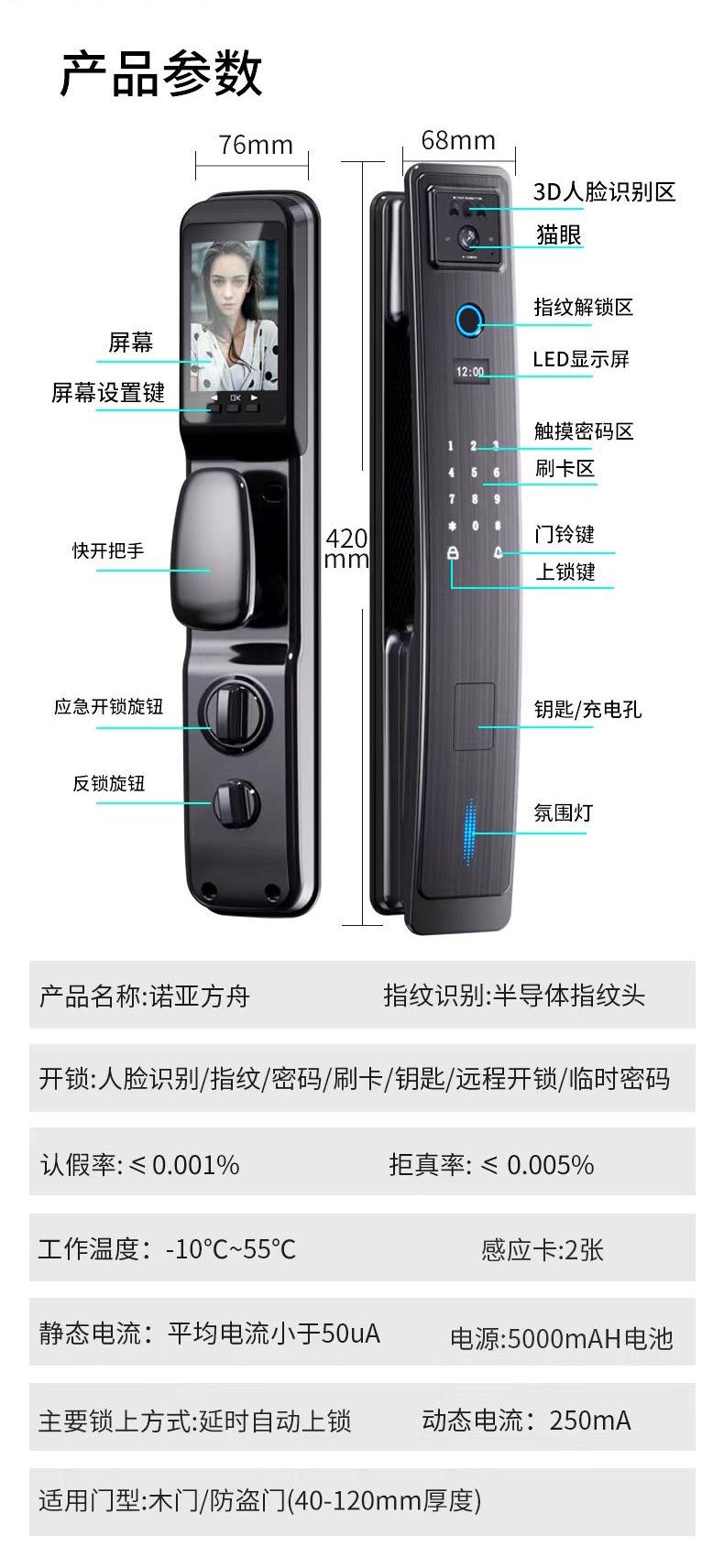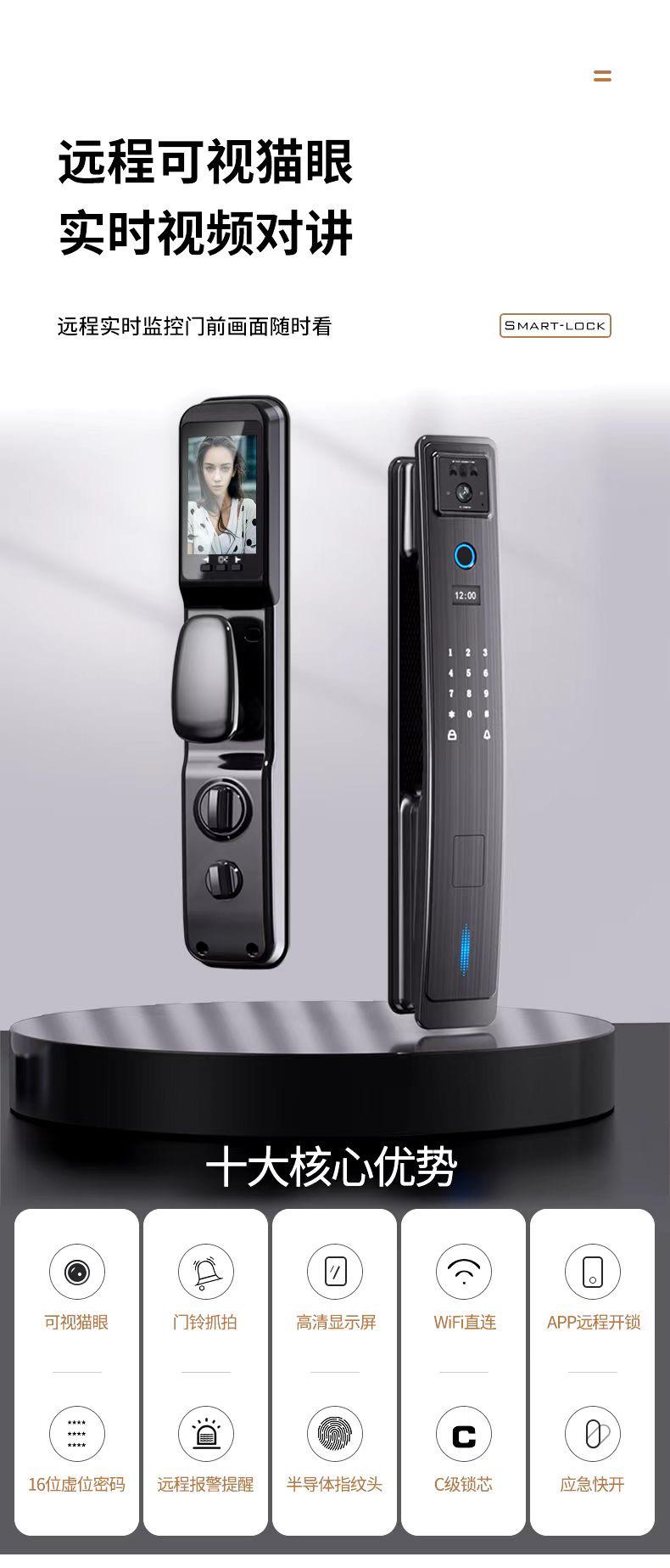 Fingerprint, Password, With key, visible cat's eye, face recognition, Remote Unlock