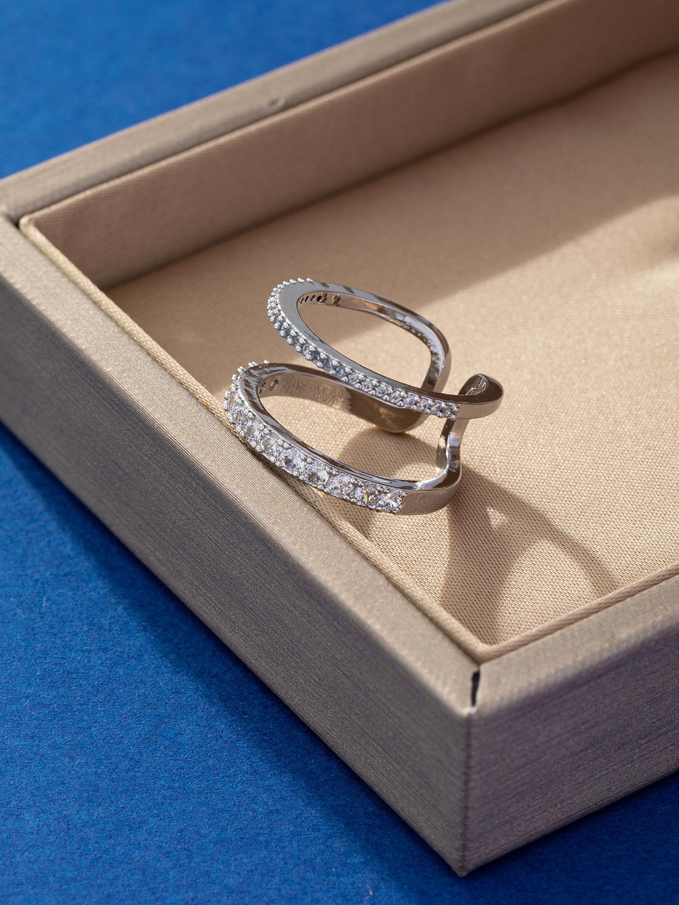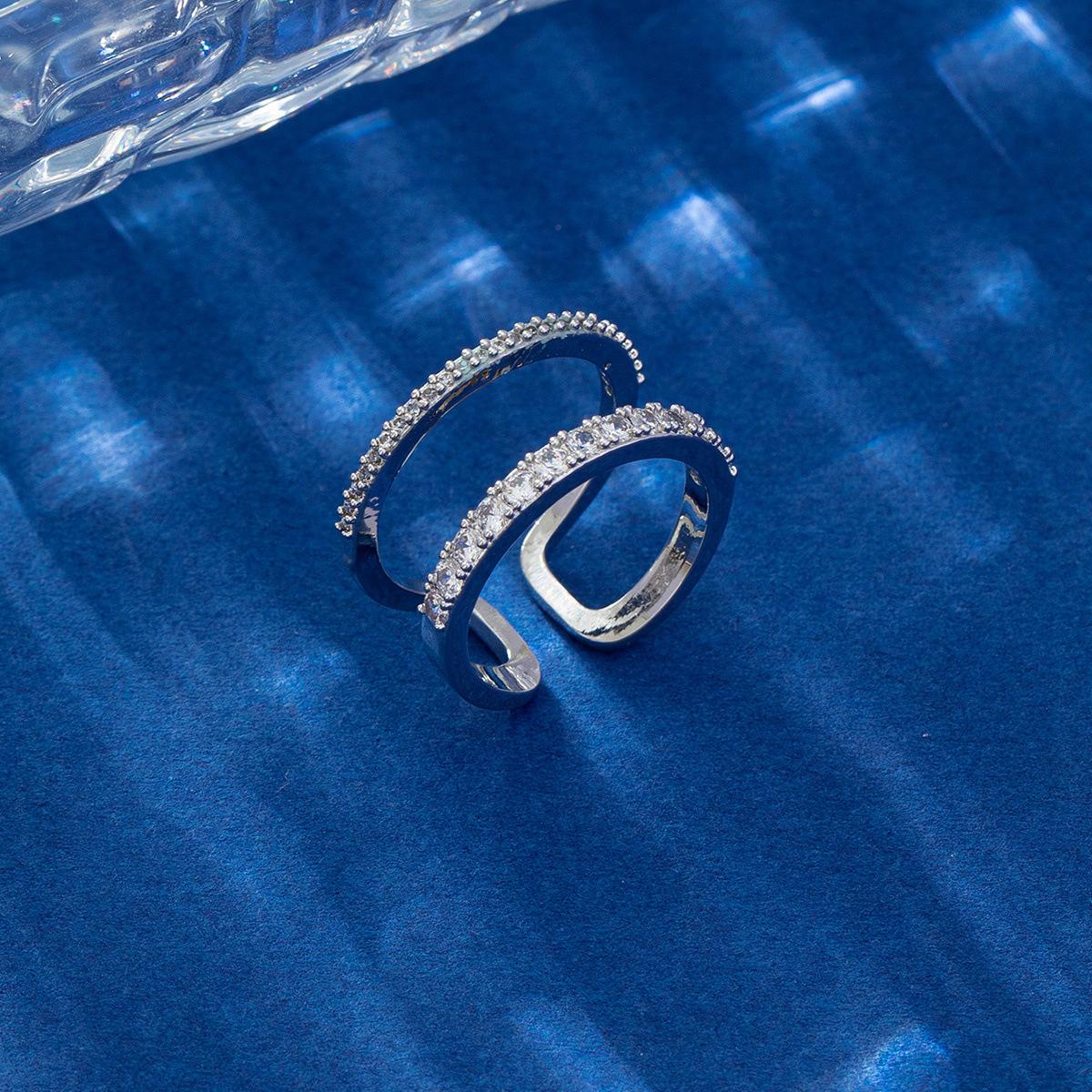Anillo de doble capa de cobre con abertura para mujer, estilo frío, personalidad nicho, diseño de moda de lujo ligero 1