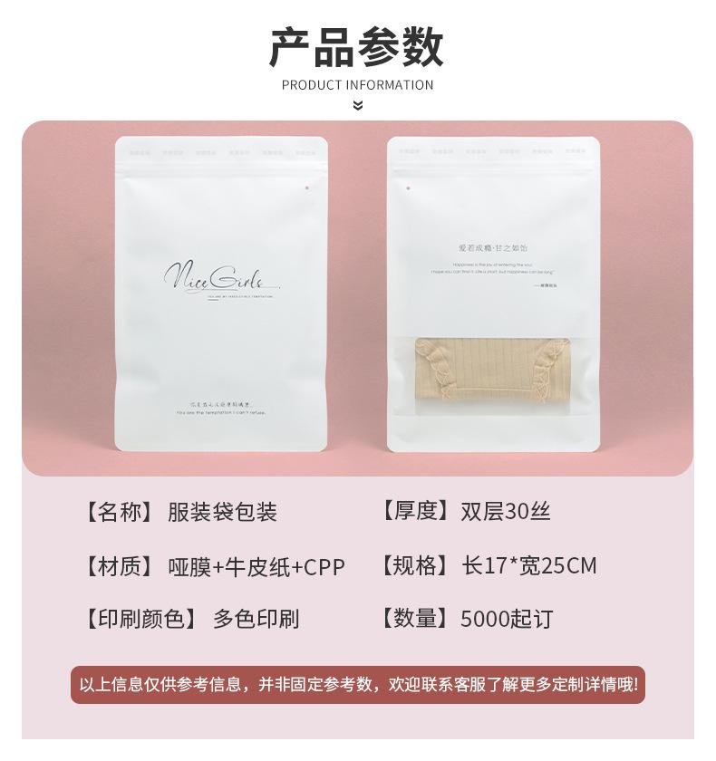 Bolsa de Embalaje para Ropa Íntima Personalizada Blanca con Ventana Bolsa Ziplock Película Mate Bolsa Selladora Cpp Bolsa para Empaque de Alimentos