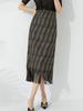 Falda plisada de alta calidad para mujer, primavera 2024, nueva moda, cintura elástica, estampado bronceado, borlas, falda versátil