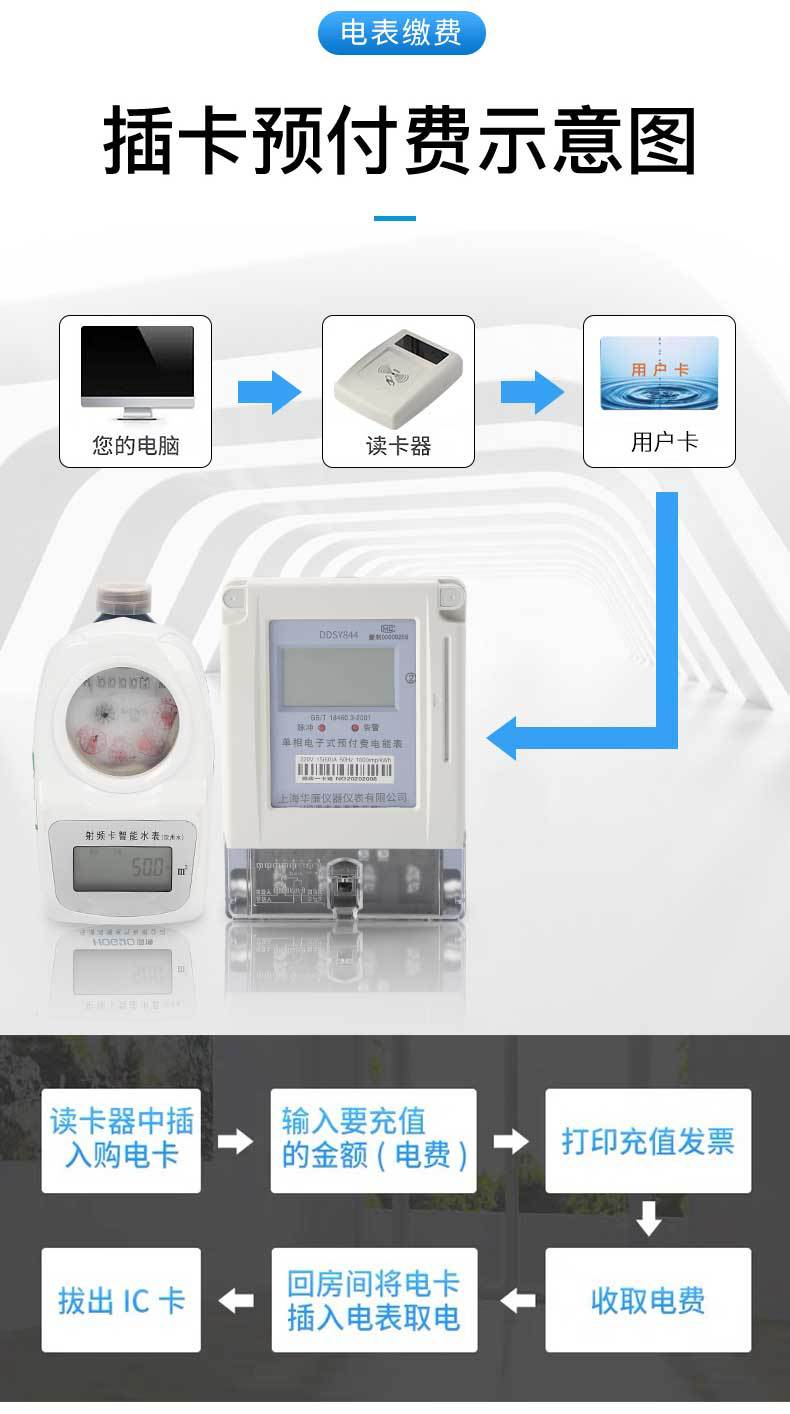 Medidores de Electricidad y Agua Prepago para Propiedades de Alquiler, Medidores Inteligentes de Agua y Electricidad, Inserción de Tarjeta IC de Una Sola Tarjeta, Suministro Exclusivo Transfronterizo