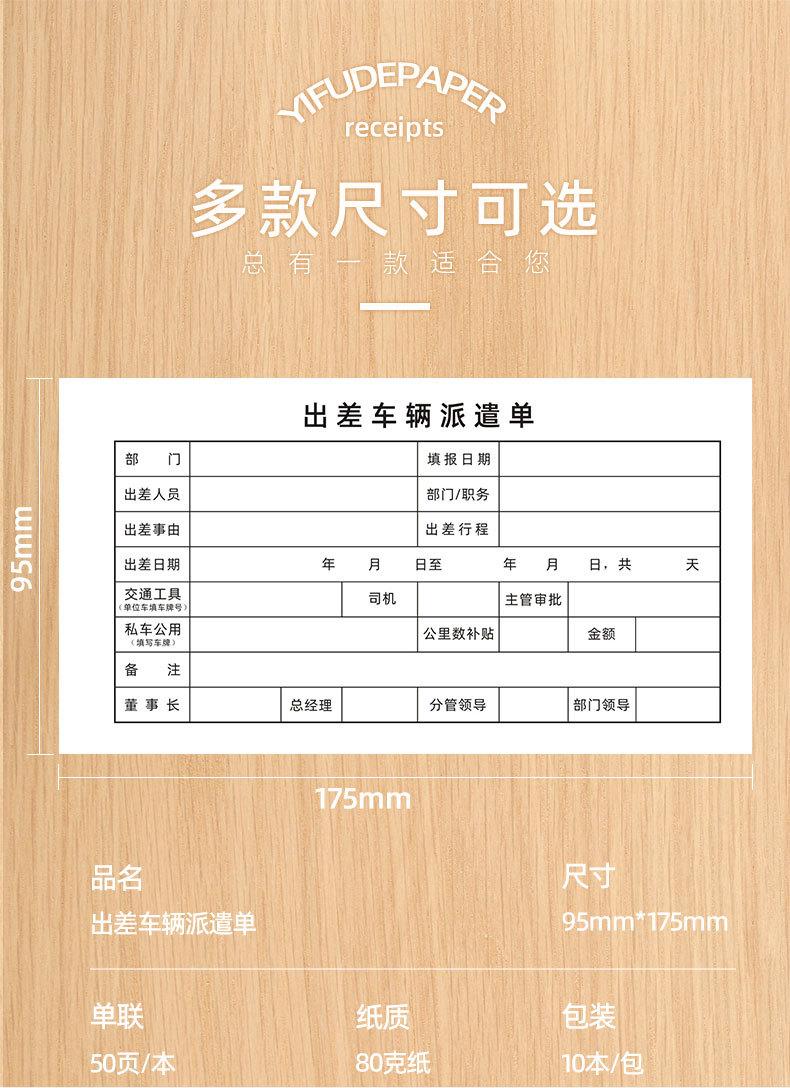 Business trip vehicle dispatch form [50 sheets per side] 1 copy, Travel expense reimbursement form [50 single-...