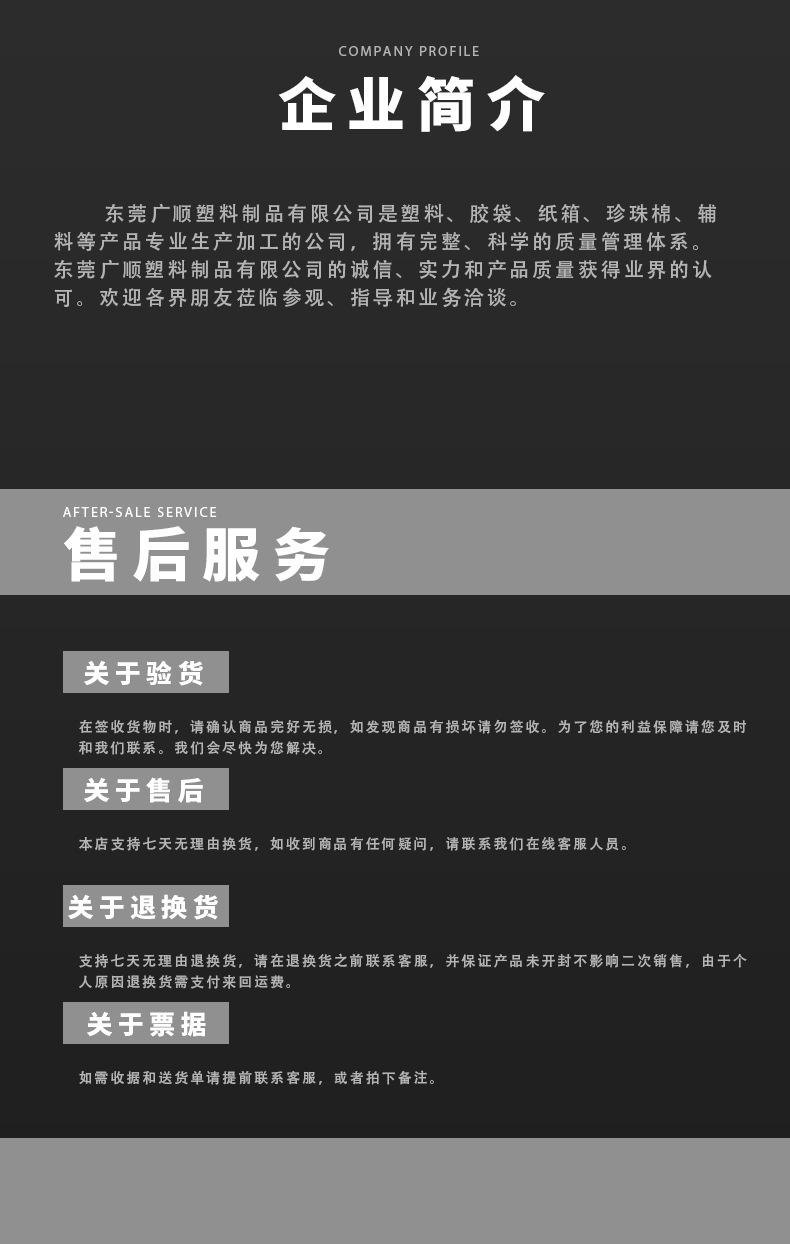 Dongguan Guangshun Plastic Products Co., Ltd. cuenta con un taller de producción profesional y un equipo completo de diseño, producción y ventas. Es un fabricante de embalaje que integra investigación y desarrollo de materiales de embalaje, producción, procesamiento, ventas y combinación. Especializado en la producción de varios tipos de materiales de embalaje: bolsas esmeriladas de CPE, bolsas con cremallera de CPE, bolsas de plástico esmerilado, bolsas de almacenamiento con cordón, bolsas de plástico PE/PO, bolsas retráctiles, bolsas compuestas. Hay varias variedades y especificaciones completas, e implementamos servicios dedicados de ventas y pedidos. Nuestros productos se venden en todo el país y son bien recibidos por los usuarios.