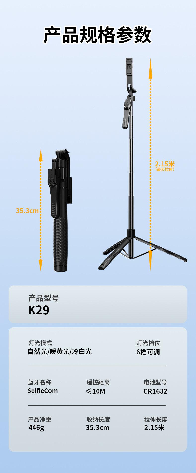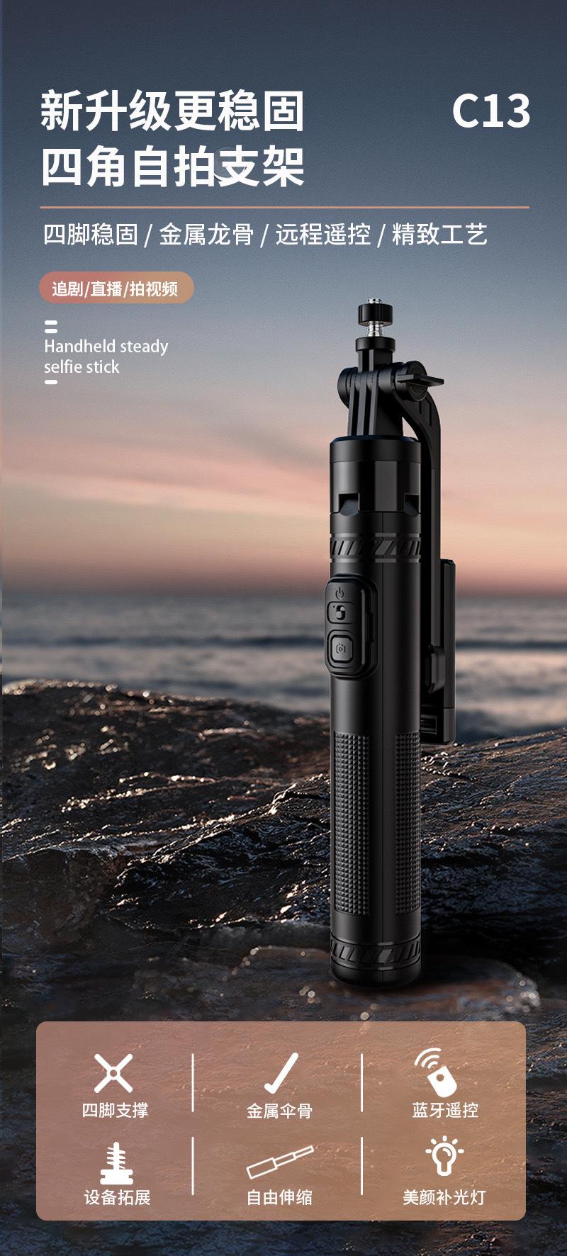 Soporte para selfies K29 C13, venta al por mayor, luz de relleno, estabilizador de mano, soporte para video vlog en vivo para teléfono móvil