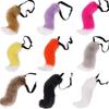 Disfraz de Halloween con cola de zorro de peluche, accesorios para disfraz, diadema con orejas de gato y cola de animal, tocado de una pieza, envío directo