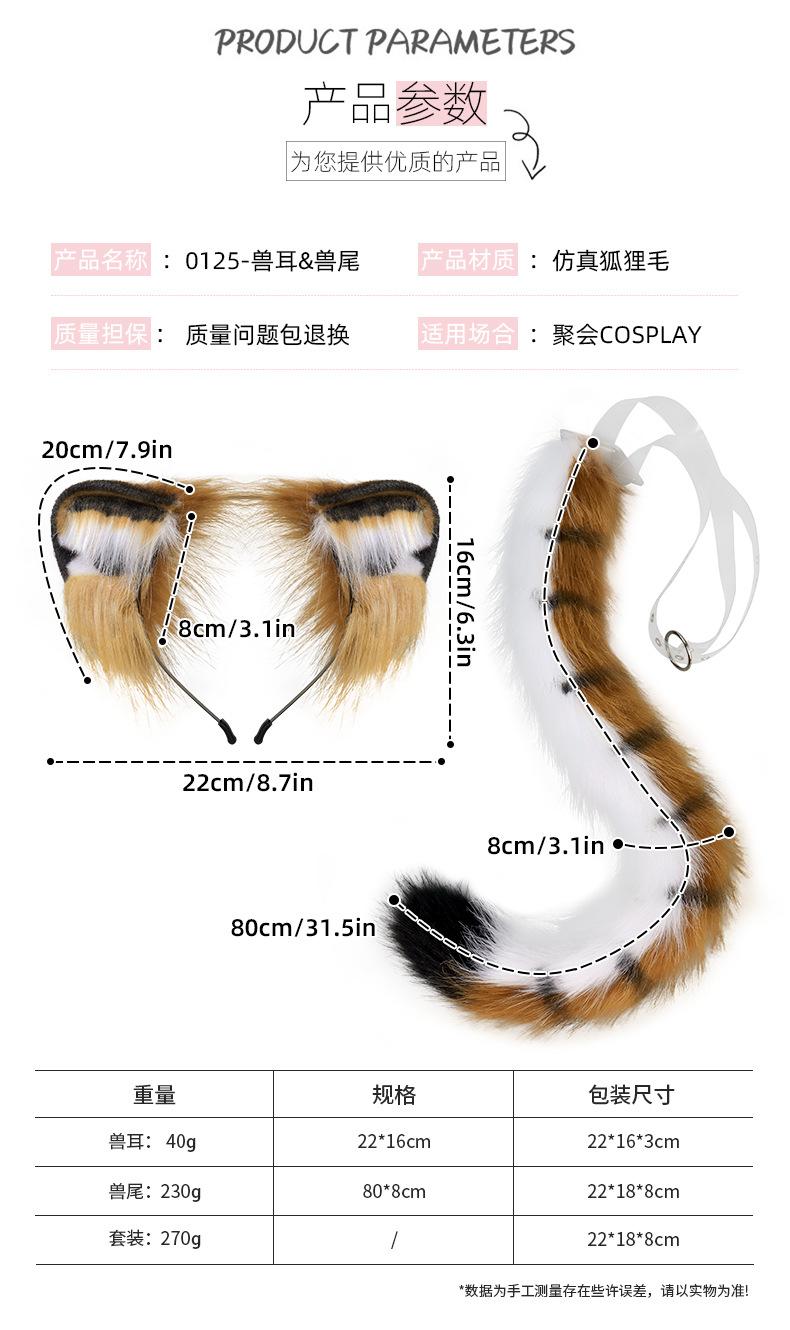 Entrega de una pieza, diadema de tigre de peluche, accesorios de cosplay hechos a mano, simulación de oreja de bestia, traje de cola de bestia, accesorios para el cabello