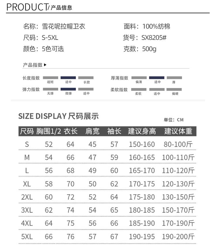S, M, L, XL, 2XL, 3XL, 4XL, 5XL