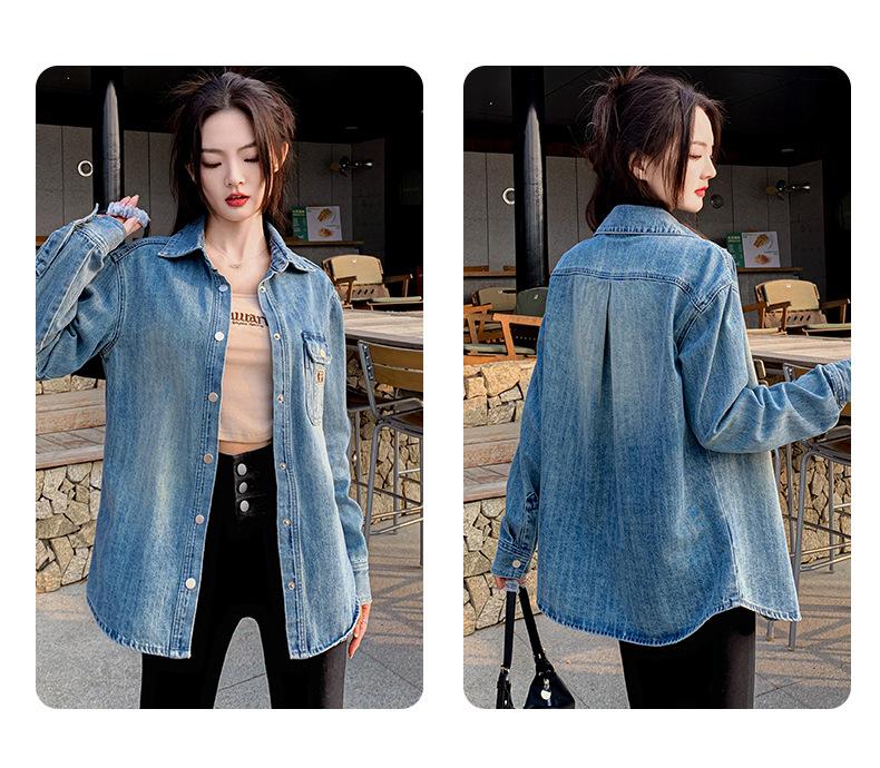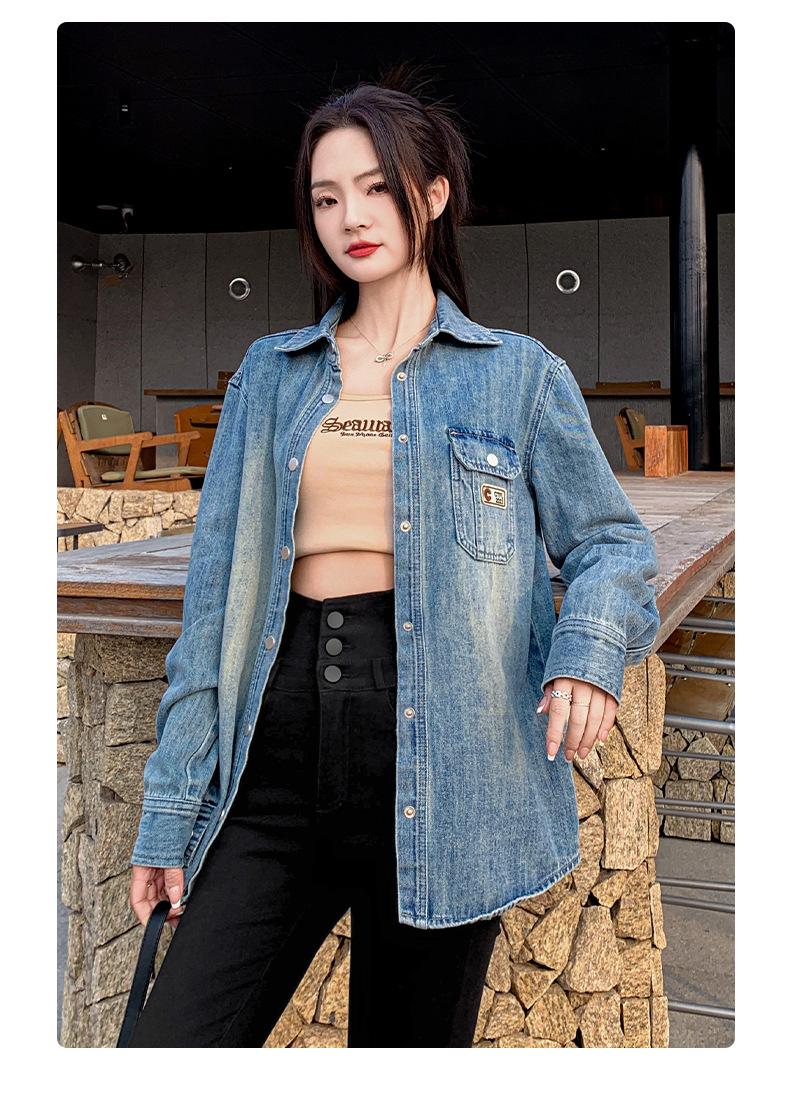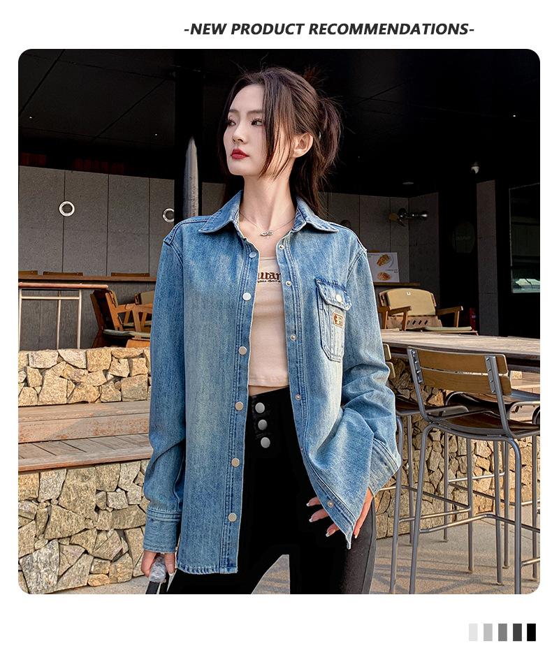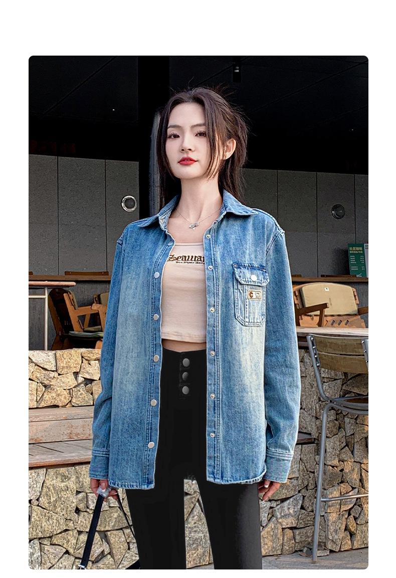 Camisa Azul Retro Americana Chaqueta de Mezclilla de Moda para Mujer Primavera Temprana 2025 Nuevo Estilo Holgada Casual Versátil de Gama Alta