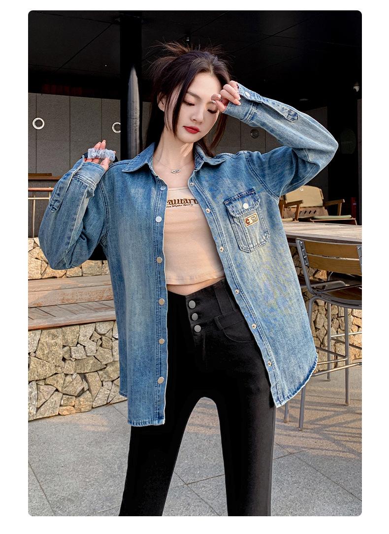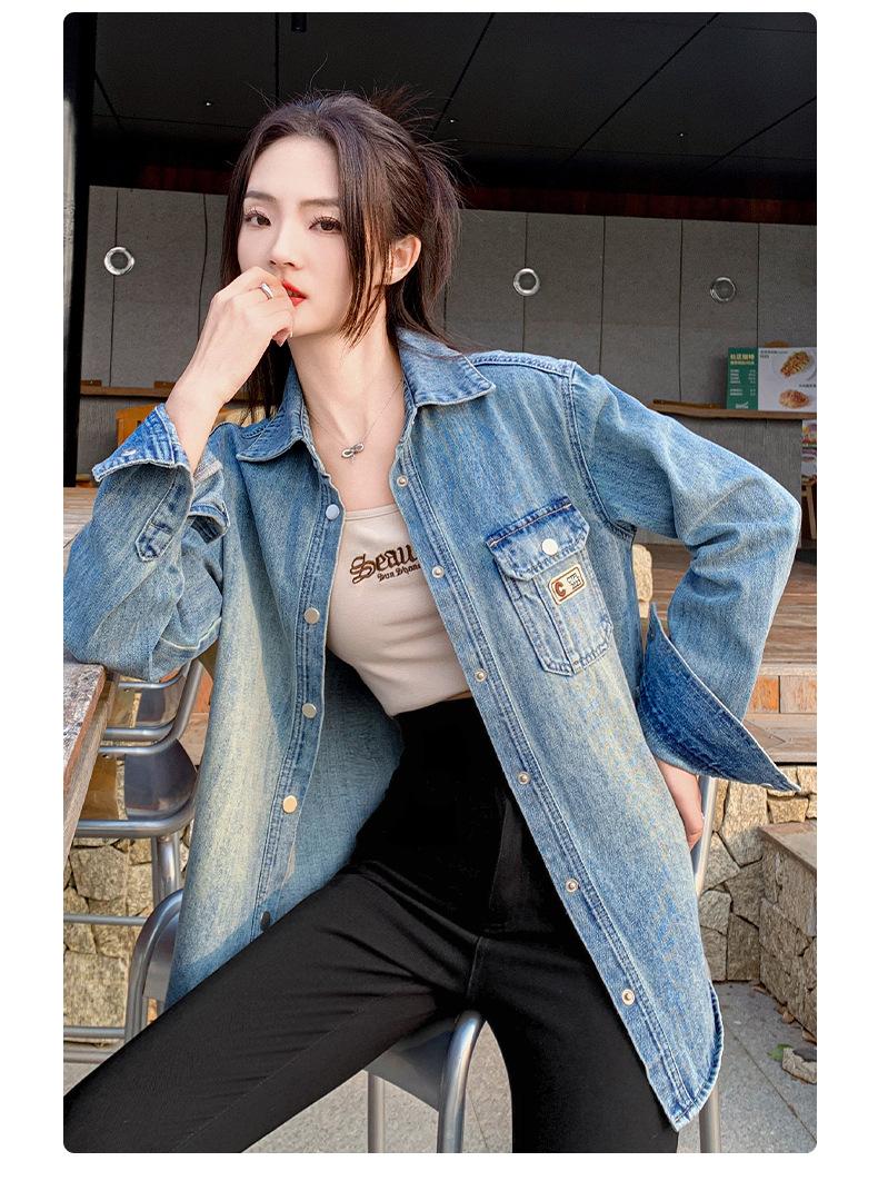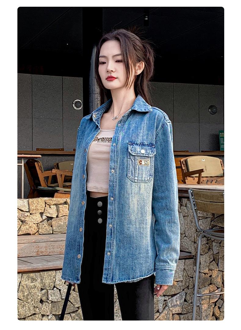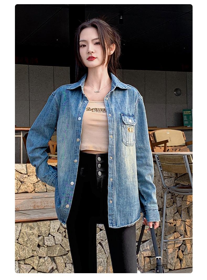 Camisa Azul Retro Americana Chaqueta de Mezclilla de Moda para Mujer Primavera Temprana 2025 Nuevo Estilo Holgada Casual Versátil de Gama Alta