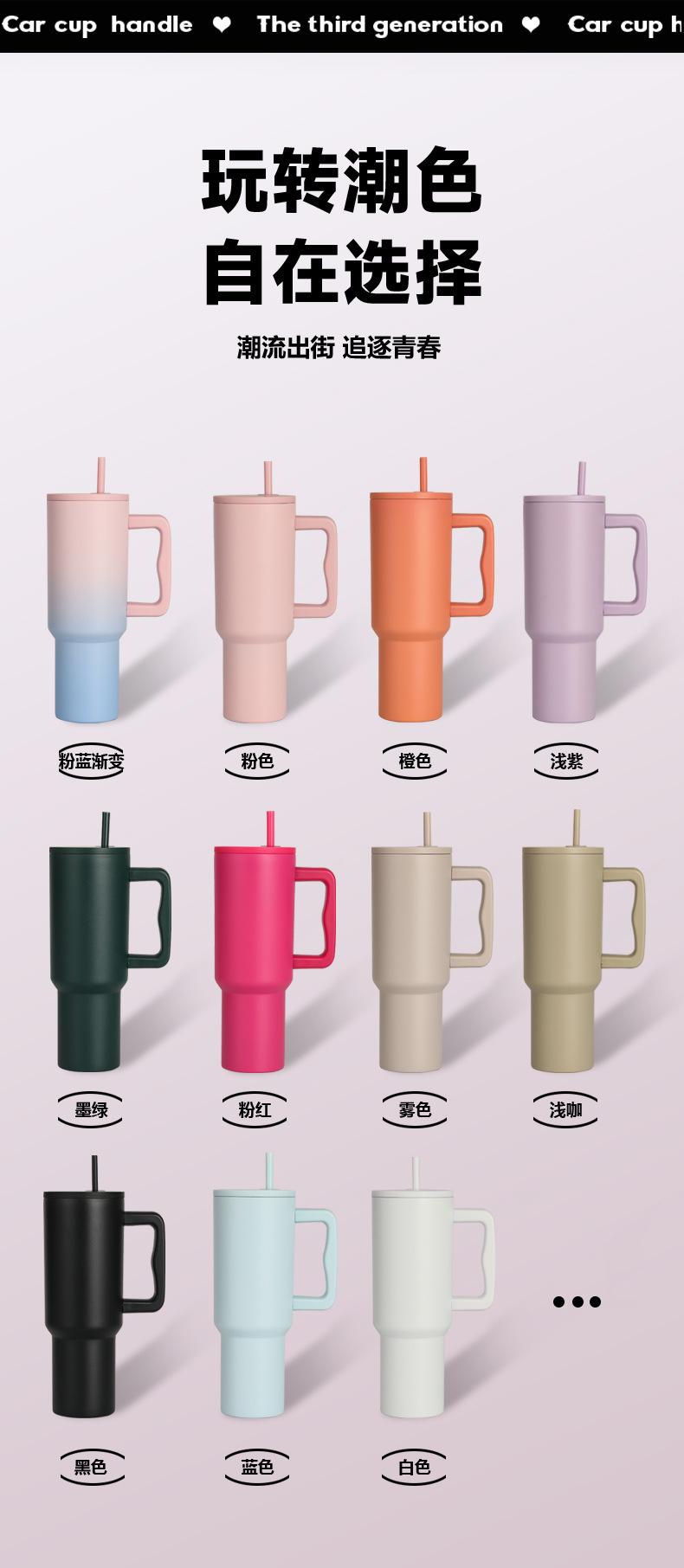 With handle, Large capacity, Car cup, With straw