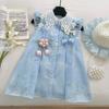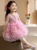 Ropa infantil europea y americana, vestido de niña rosa con flores tridimensionales, vestido de princesa sin mangas con lazo, ropa de actuación infantil