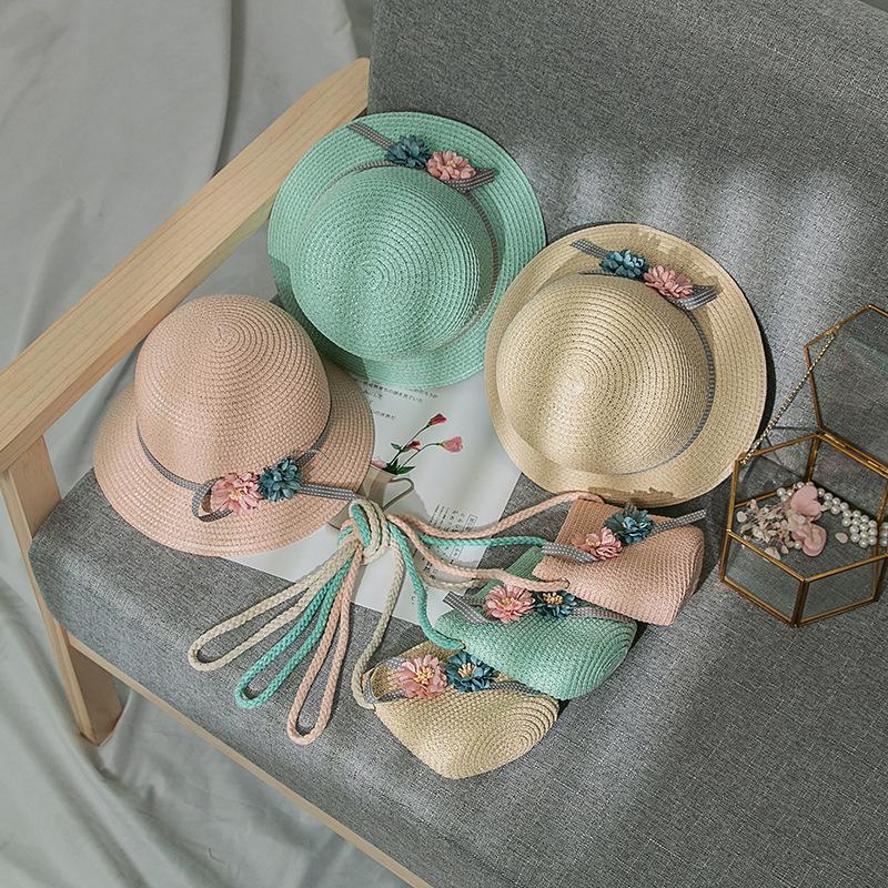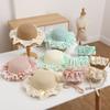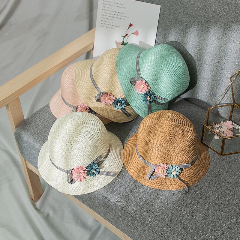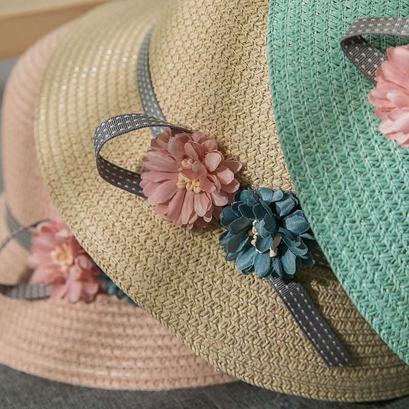Sombrero de paja de ala grande plegable para niñas de verano con flores, lindo, protección solar, para exteriores, protección UV, sombrero de playa