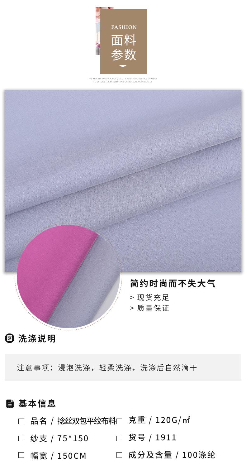 Nuevo vestido de primavera y verano para mujer, tejido de poliéster liso, tejido de gasa desordenado de seda torcida, suministro puntual