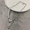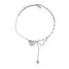 Collar de amor de Qingdao Jewelry, con temperamento simple, perla de cristal, ligero, de lujo, estilo frío, retro, con forma de corazón, cadena de clavícula para mujer