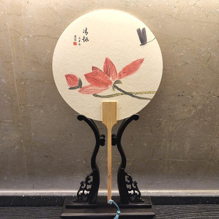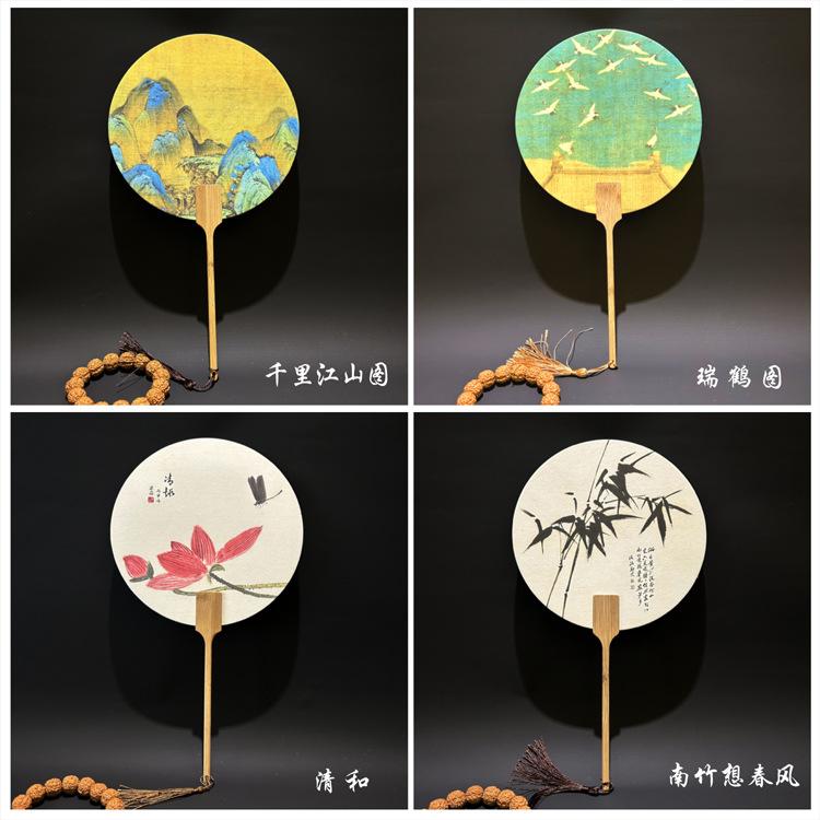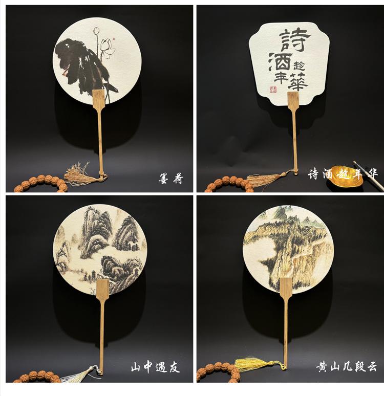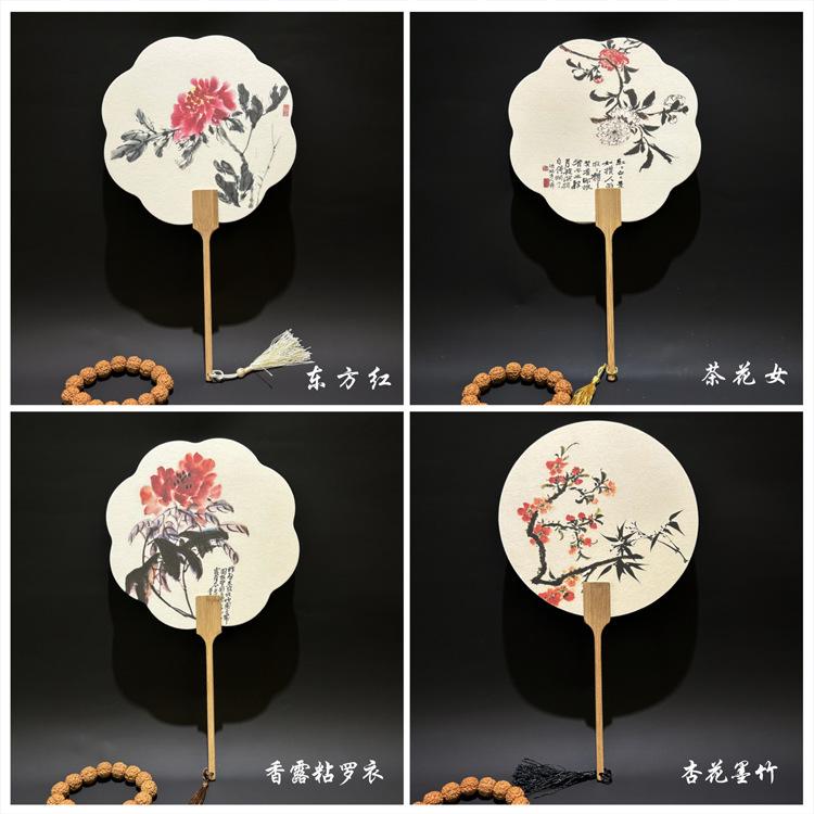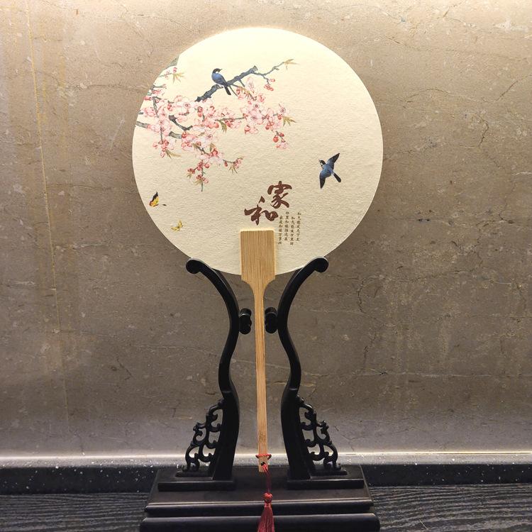 Abanico redondo de papel de arroz de imitación antiguo abanico redondo de estilo chino venta al por mayor abanico redondo personalizado abanico redondo de papel creación DIY impresión de abanico de papel