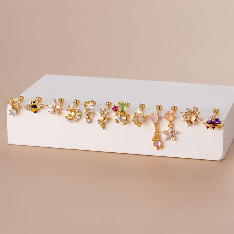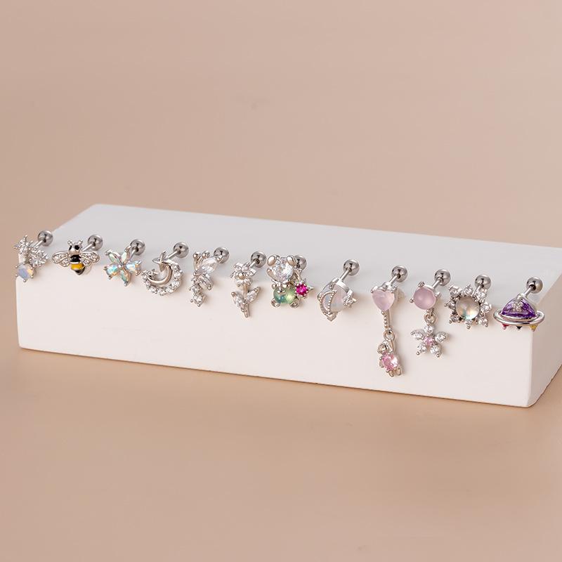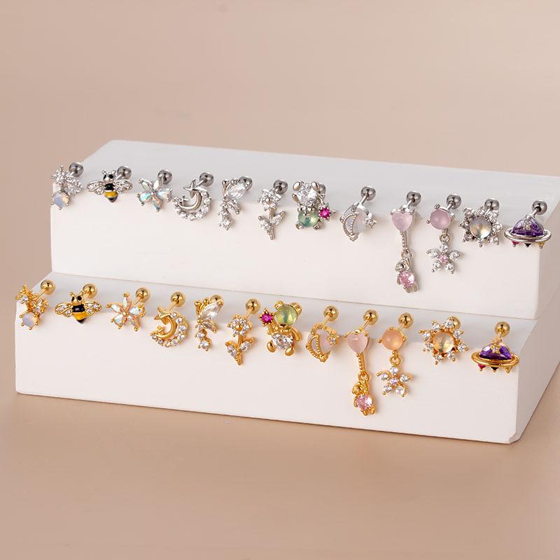 nombre del producto | Pendientes de acero inoxidable con forma de hueso de oreja, con forma de varilla fina y forma de bola con rosca de circonita de color cuadrado, estilo coreano. |