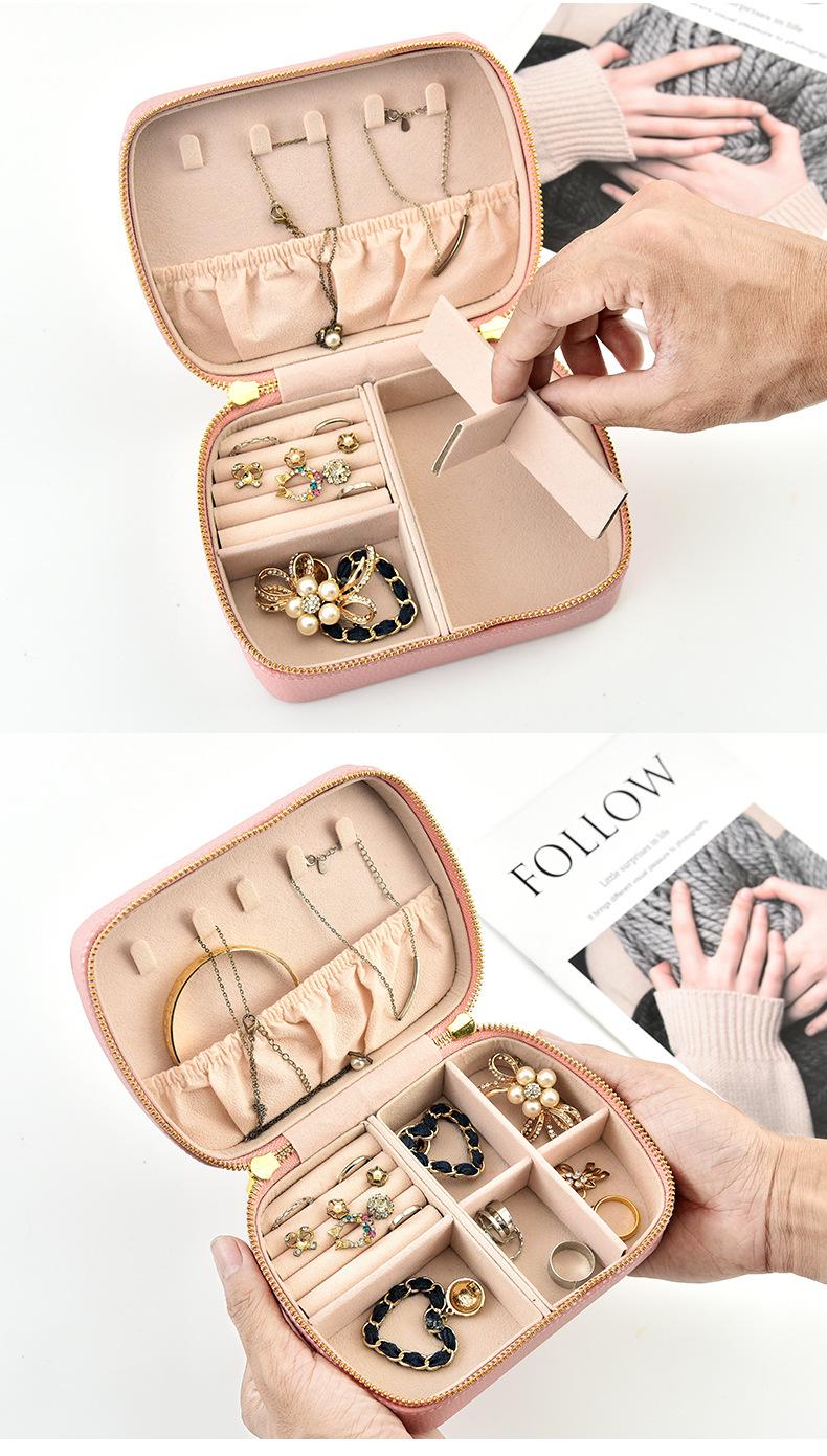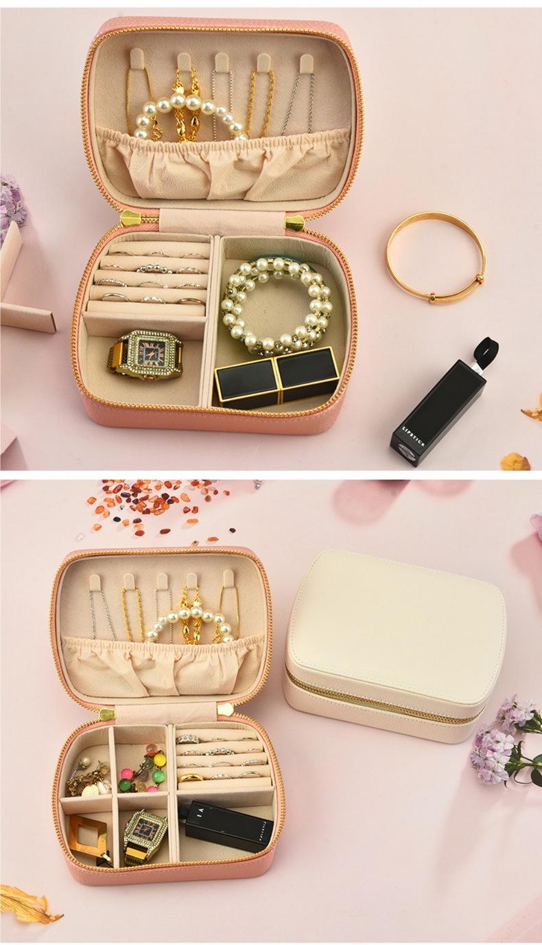 Caja de Joyería Transfronteriza Nueva para el Hogar Portátil de Gran Capacidad Anillos Aretes Pulsera Collar Blanco Caja de Almacenamiento de Joyería para Mujeres