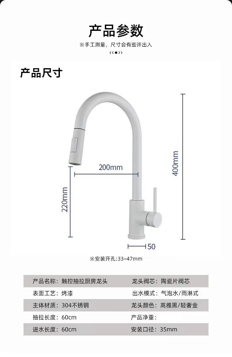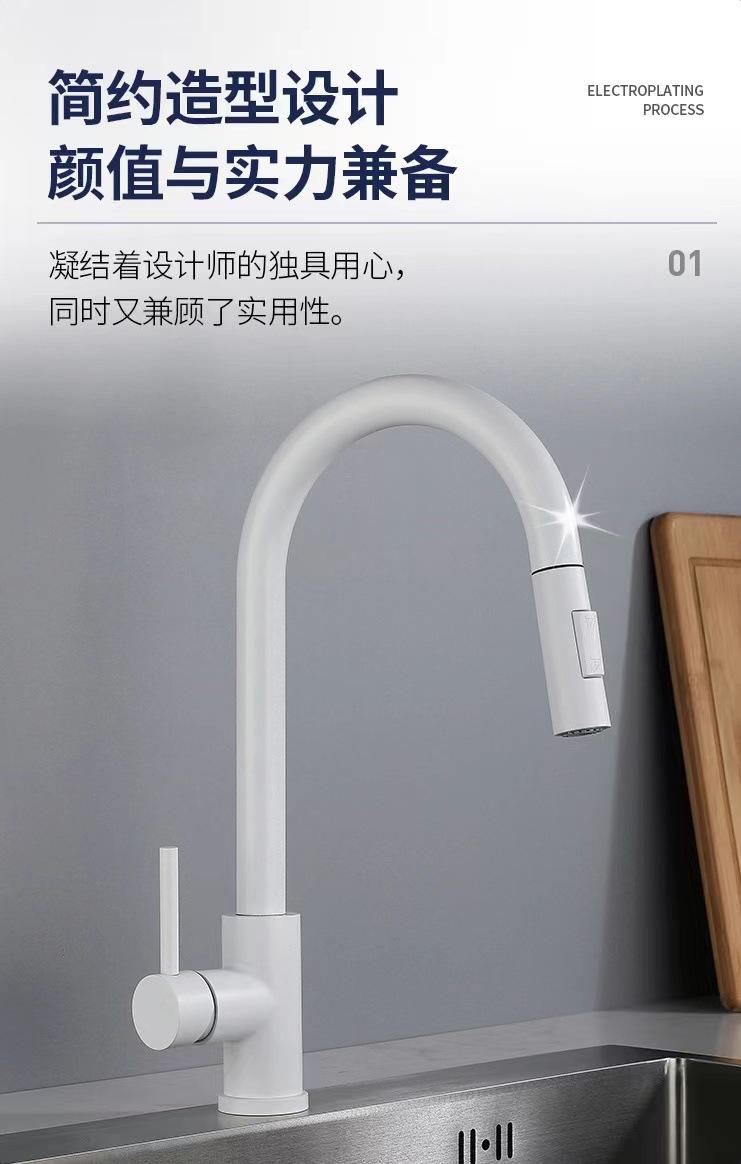 Compra Grifo universal extraíble para cocina, con toque inteligente, color blanco, para lavabo de verduras, grifo de agua caliente y fría, fregadero de acero inoxidable 304 al por mayor en Joom.pro