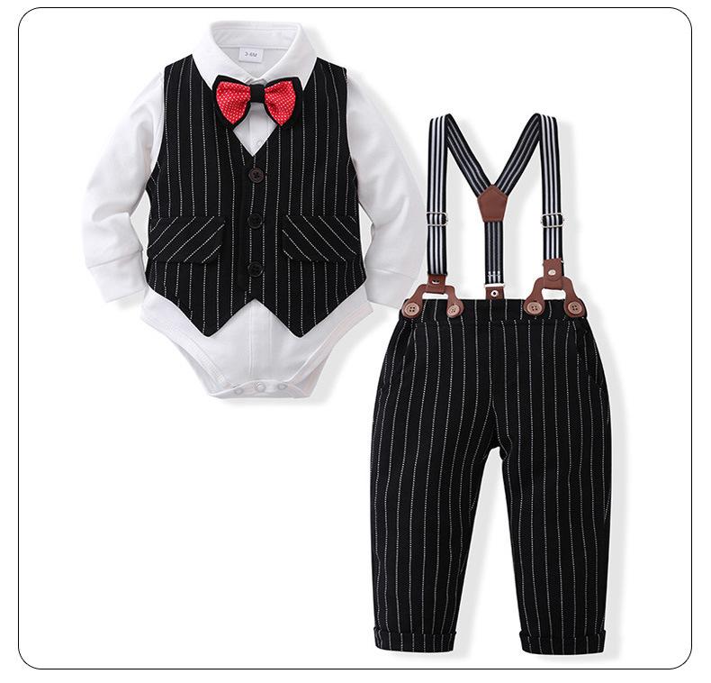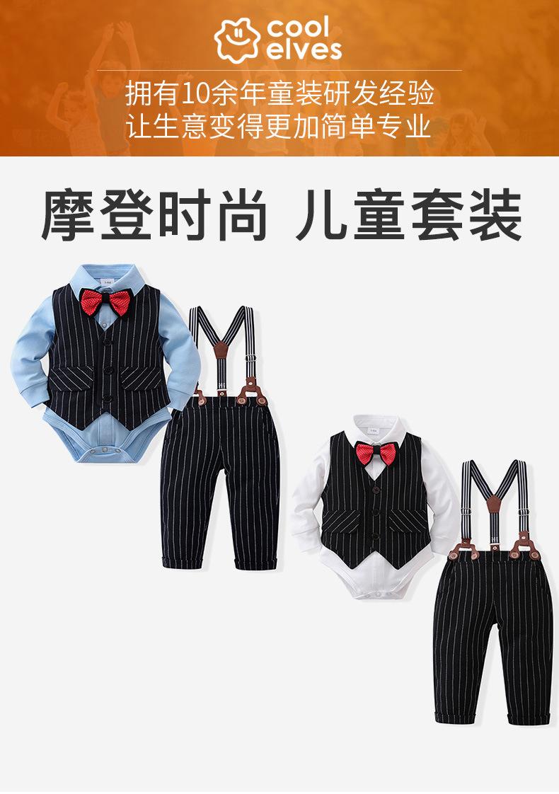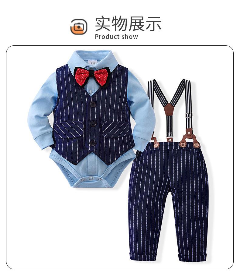 Ropa infantil transfronteriza, ropa de bebé, ropa de otoño para niño, ropa de bebé, tirantes de caballero, traje infantil de primavera y otoño de tres piezas