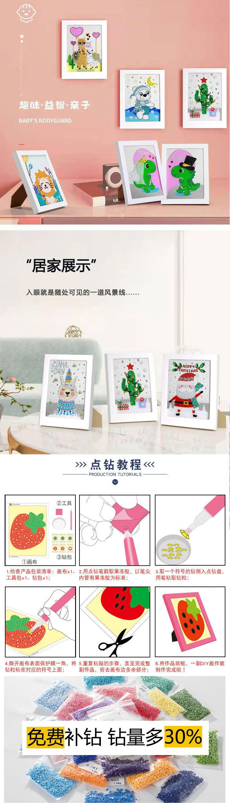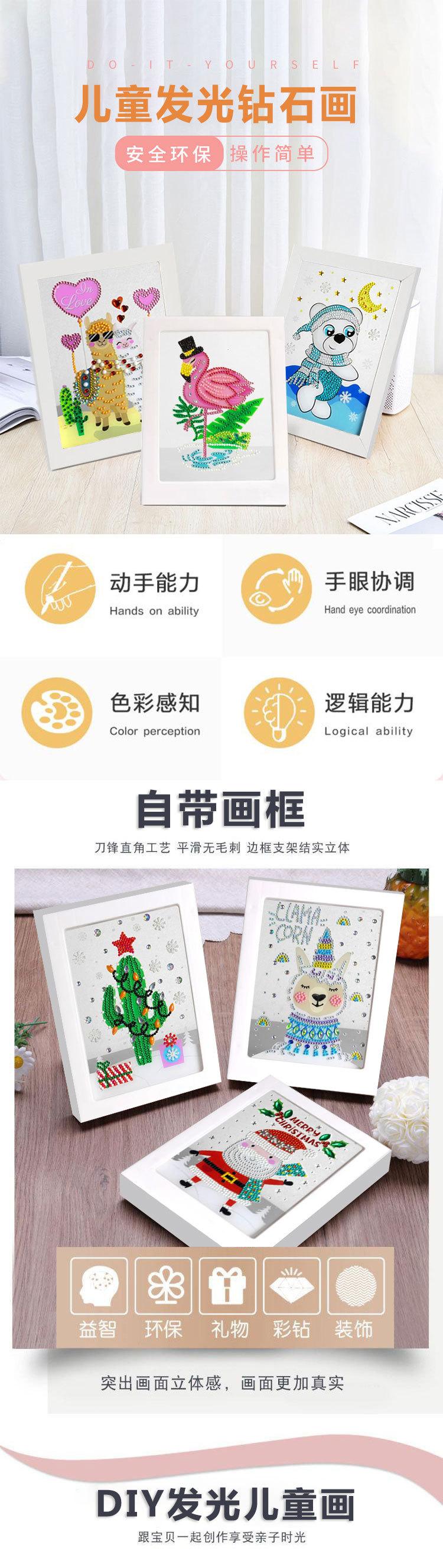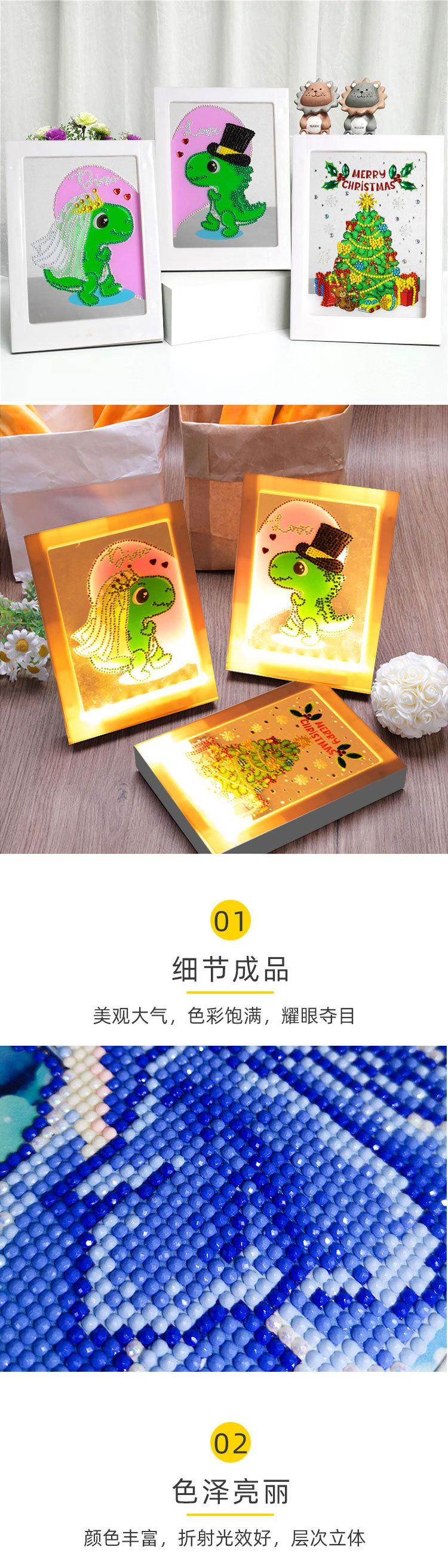 Luz Nocturna Educativa Personalizada para Niños Hecha a Mano DIY Pintura de Diamantes Diamantes Circundantes Dibujos Animados con Marco Pegatina de Diamantes Luminosos