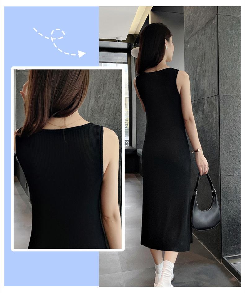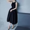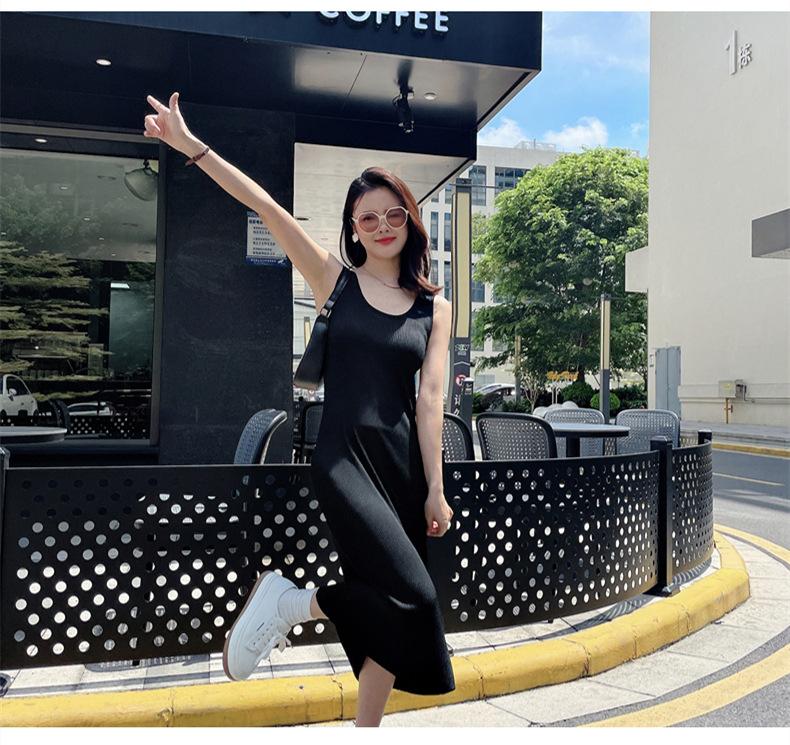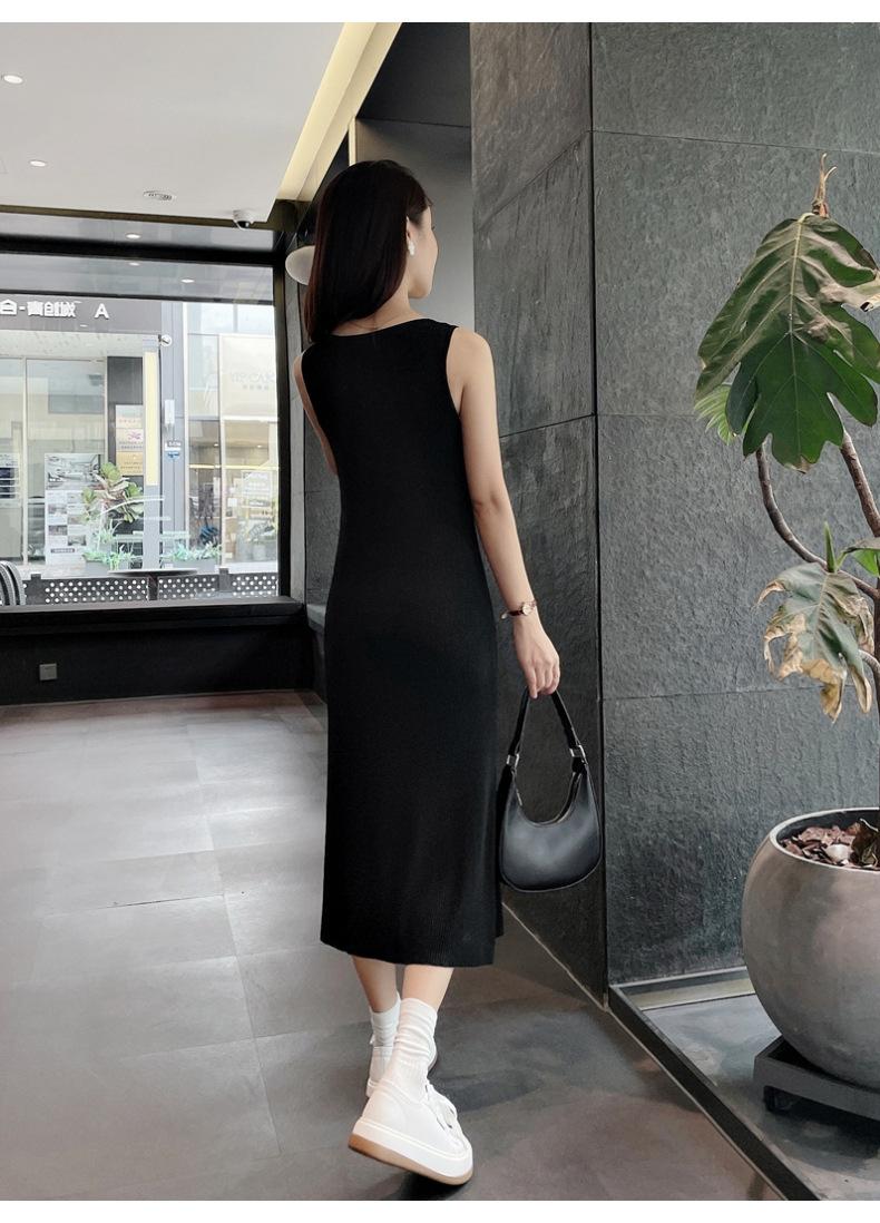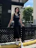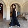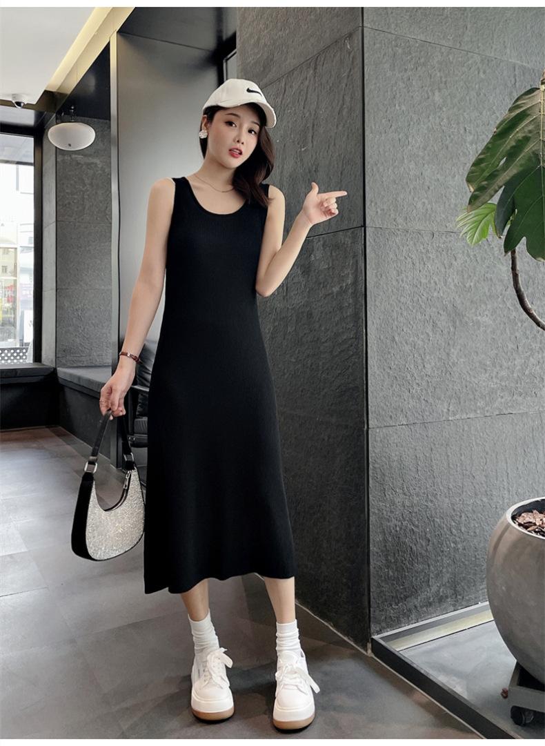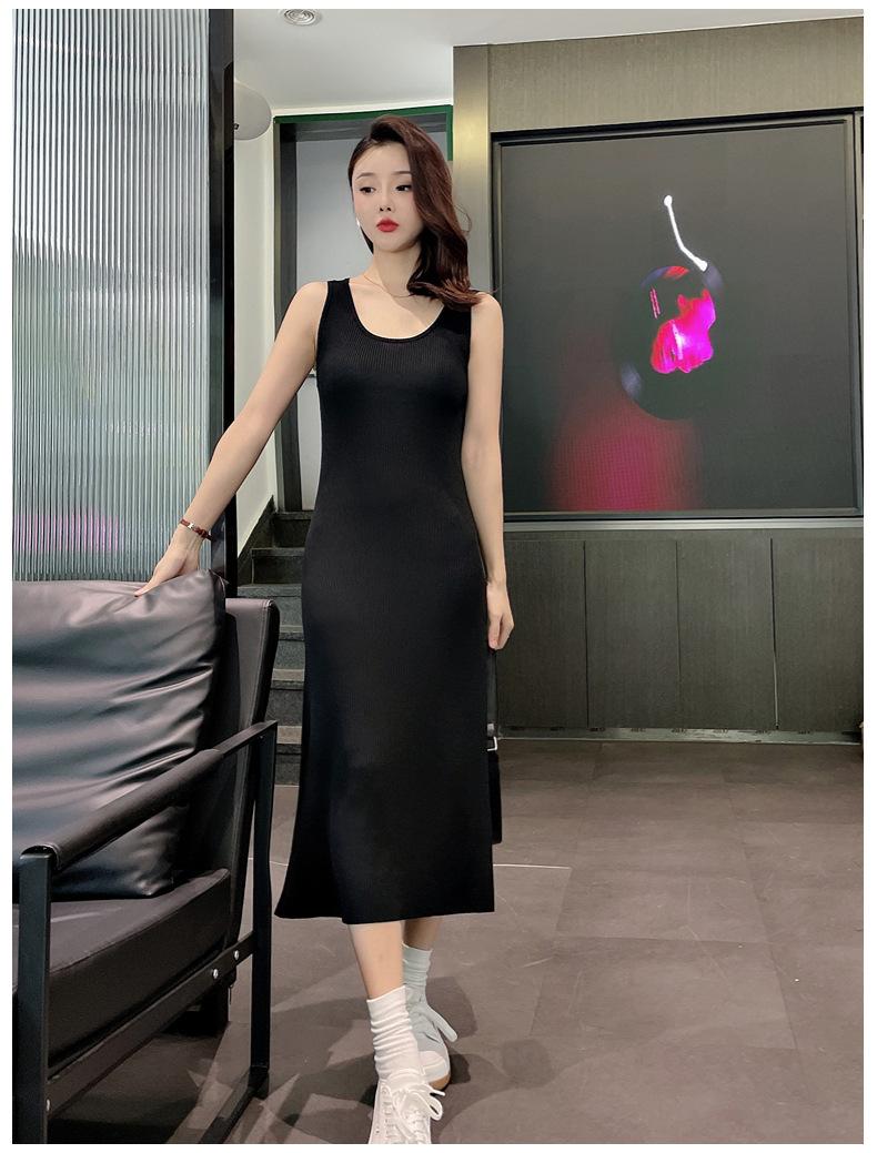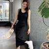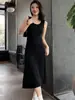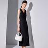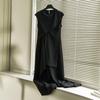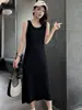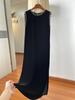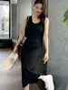 Vestido largo negro sin mangas de alta gama de verano 2025 para mujer, elegante, drapeado, ajustado, de seda helada, vestido de longitud media