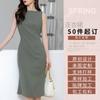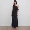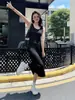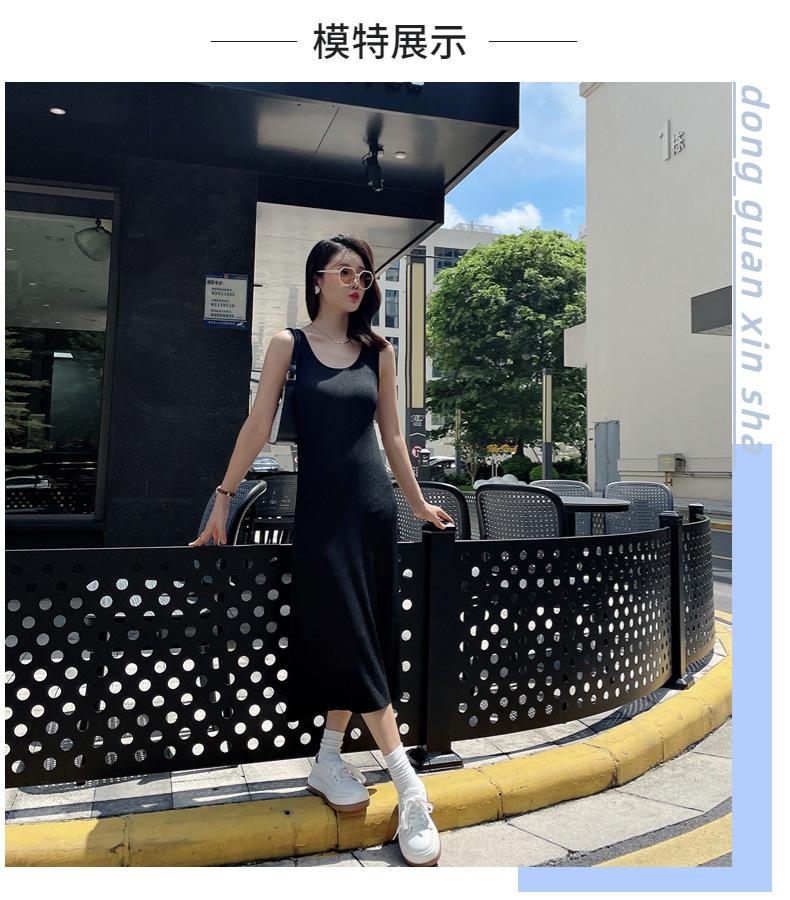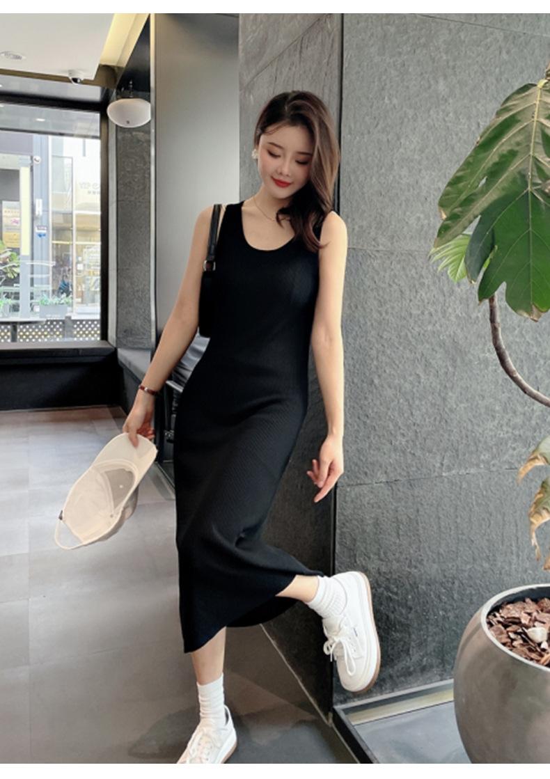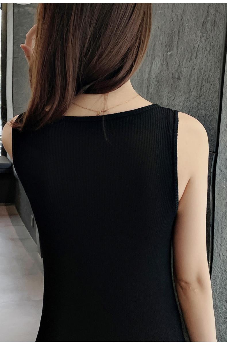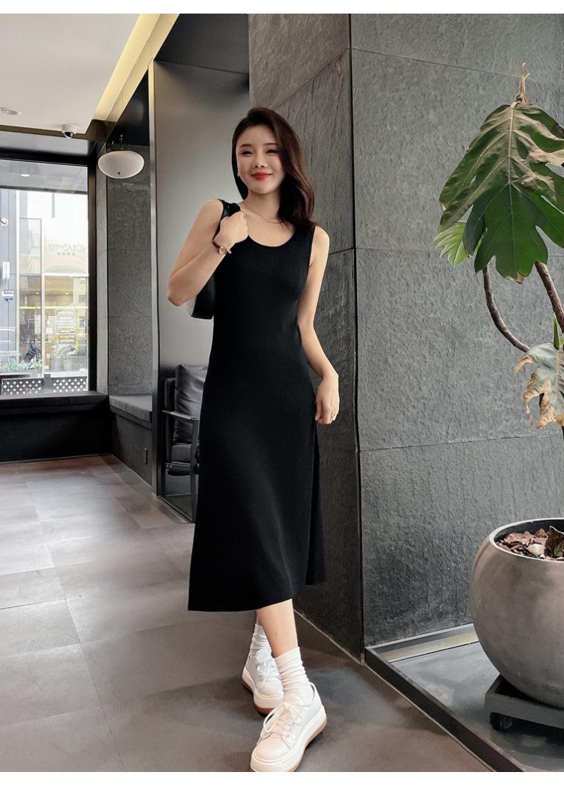 Vestido largo negro sin mangas de alta gama de verano 2025 para mujer, elegante, drapeado, ajustado, de seda helada, vestido de longitud media