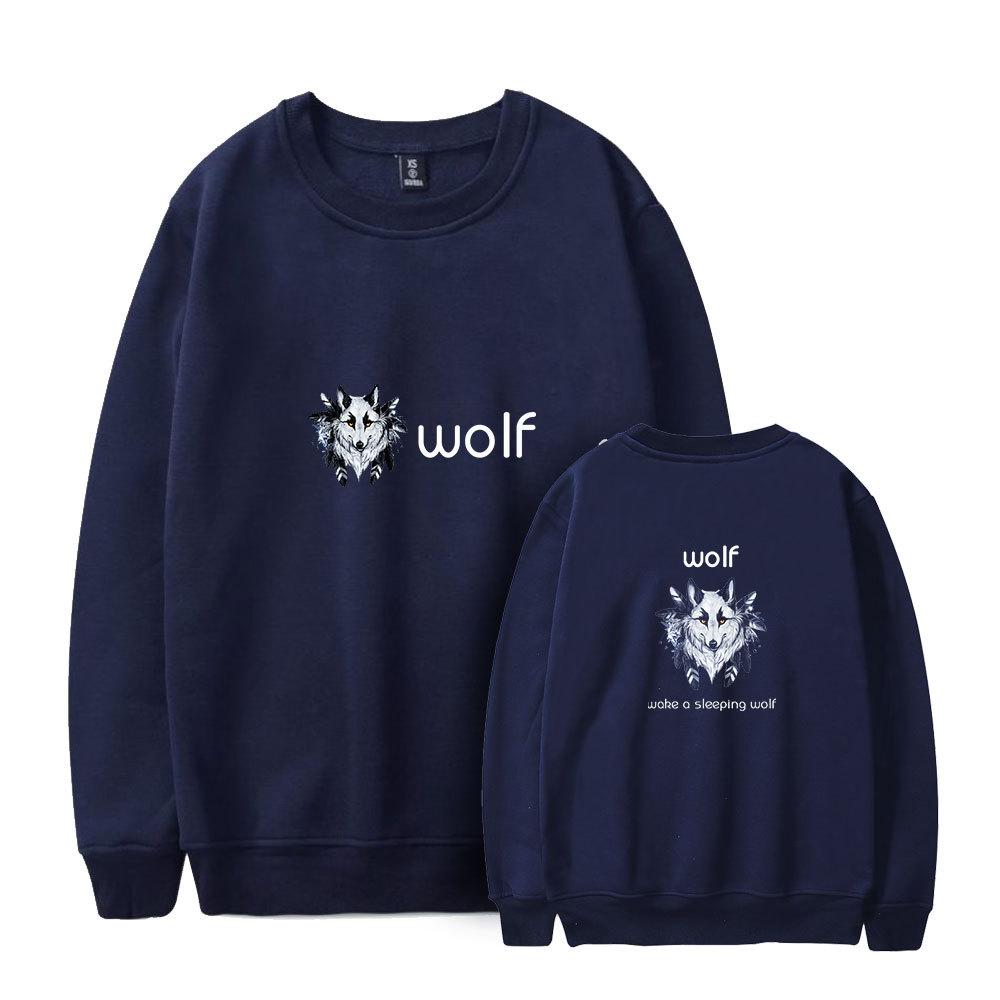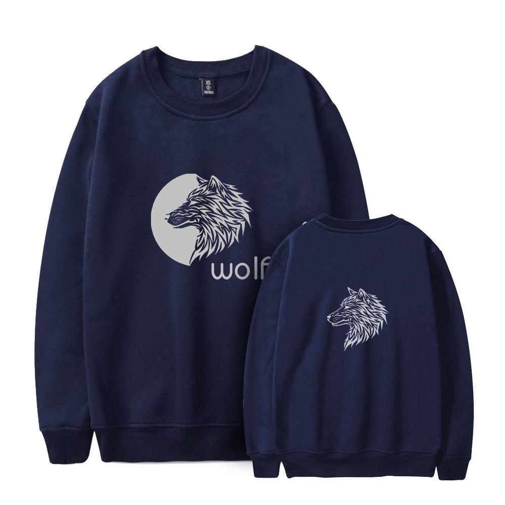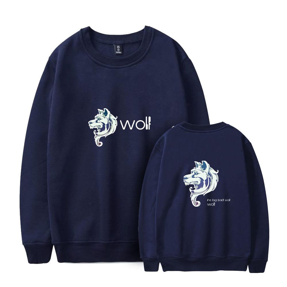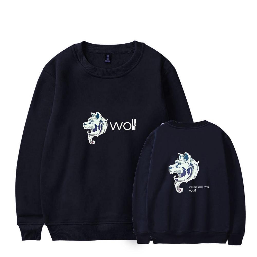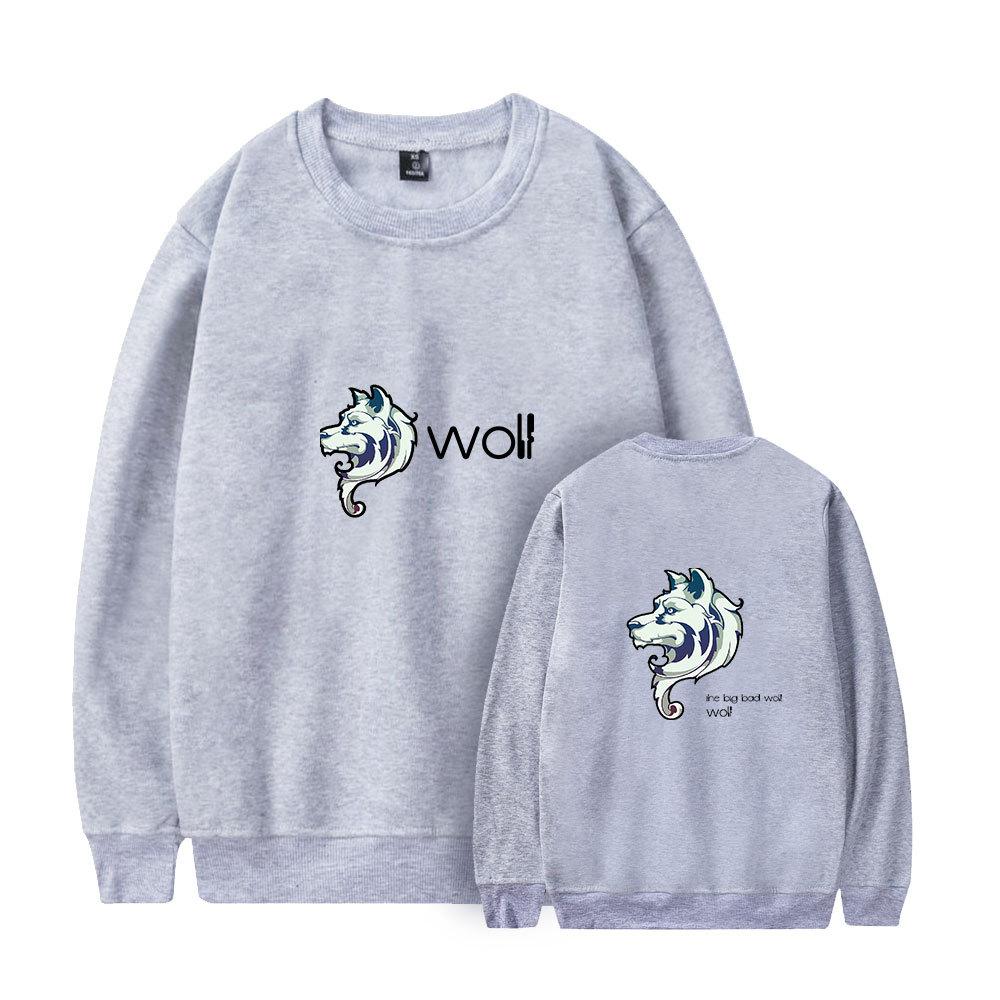 Suéter holgado de cuello redondo para mujer, estilo coreano, con estampado de lobo de dibujos animados, informal, otoño e invierno, 2022