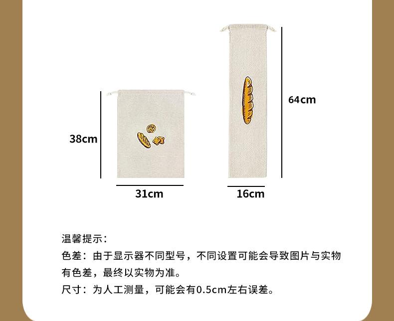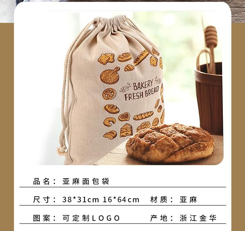 Bolsa para Tostadas de Lino Caliente Transfronteriza Reutilizable para Galletas Baguette Francesa Bolsa de Almacenamiento Cordón Bolsa para Pan