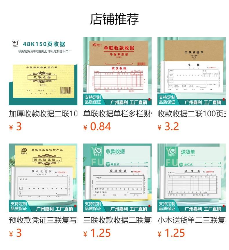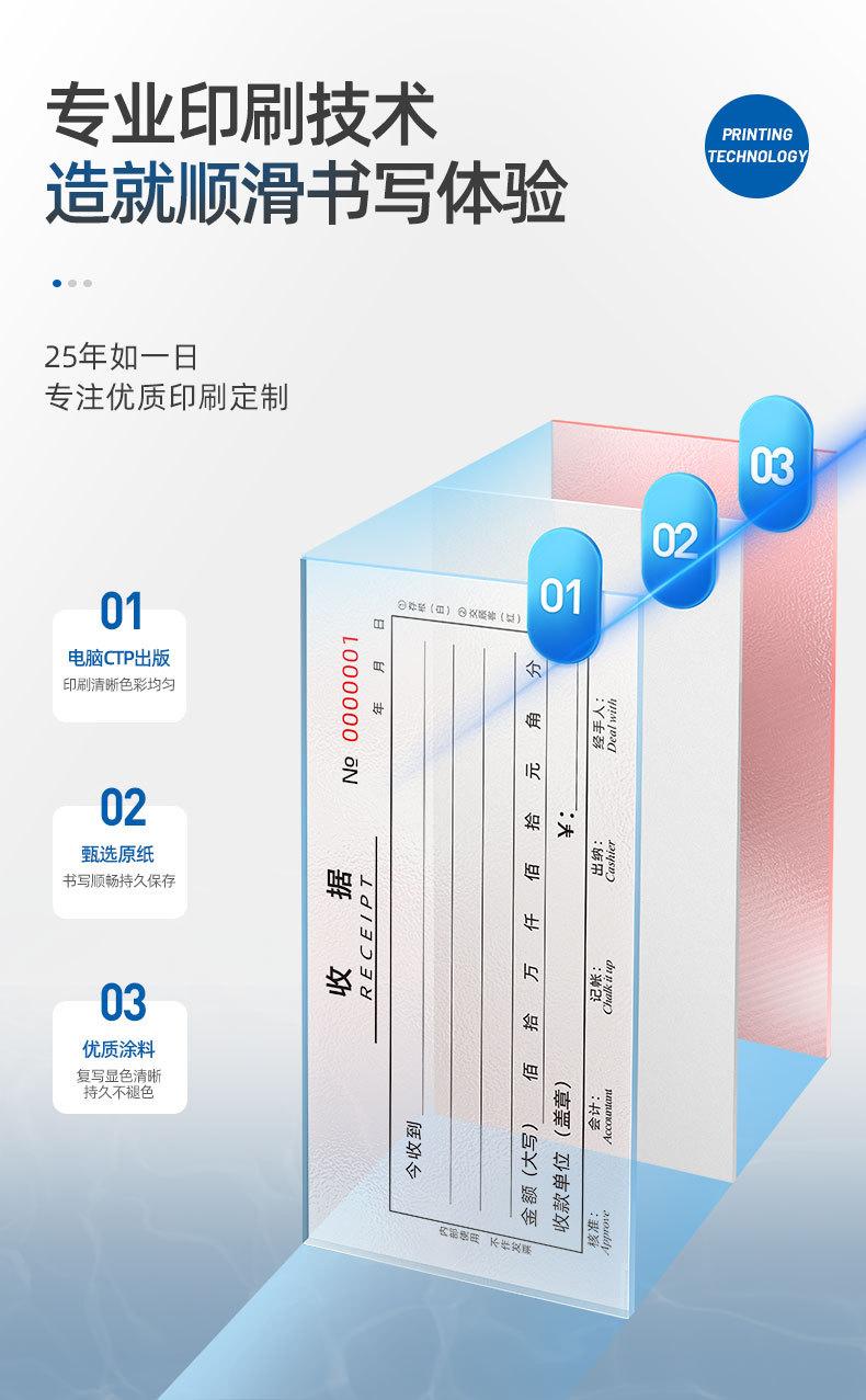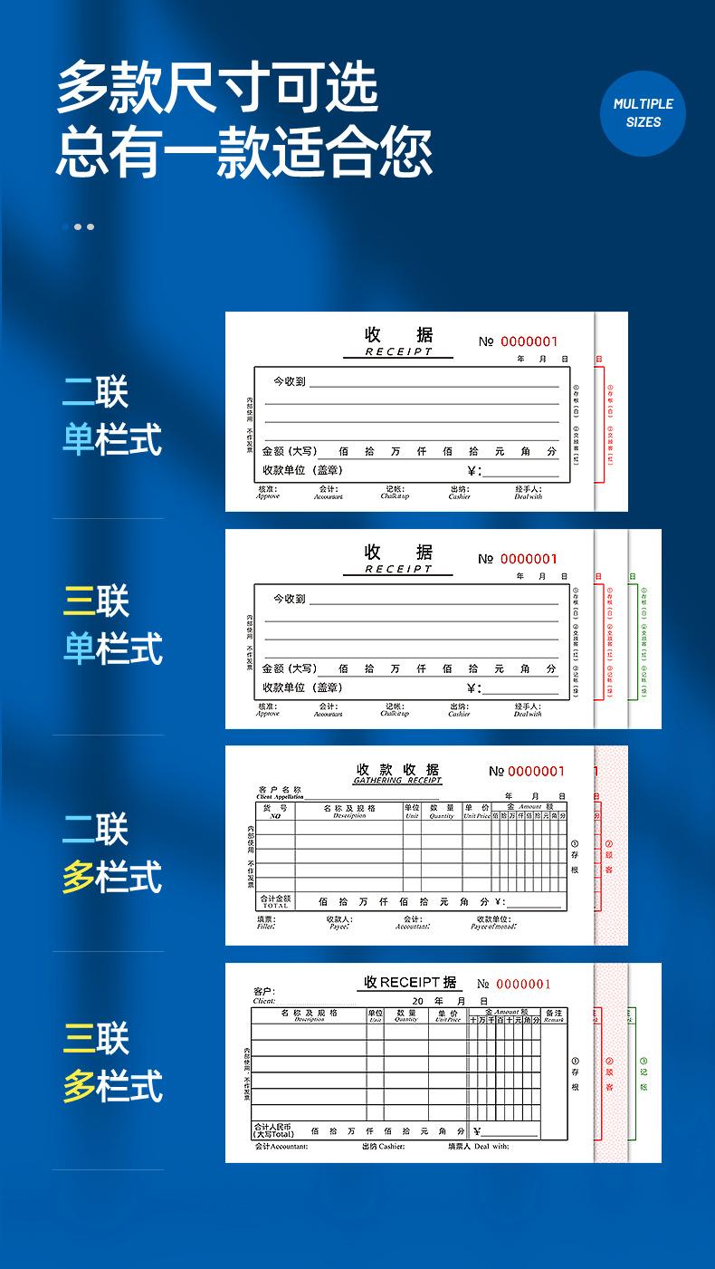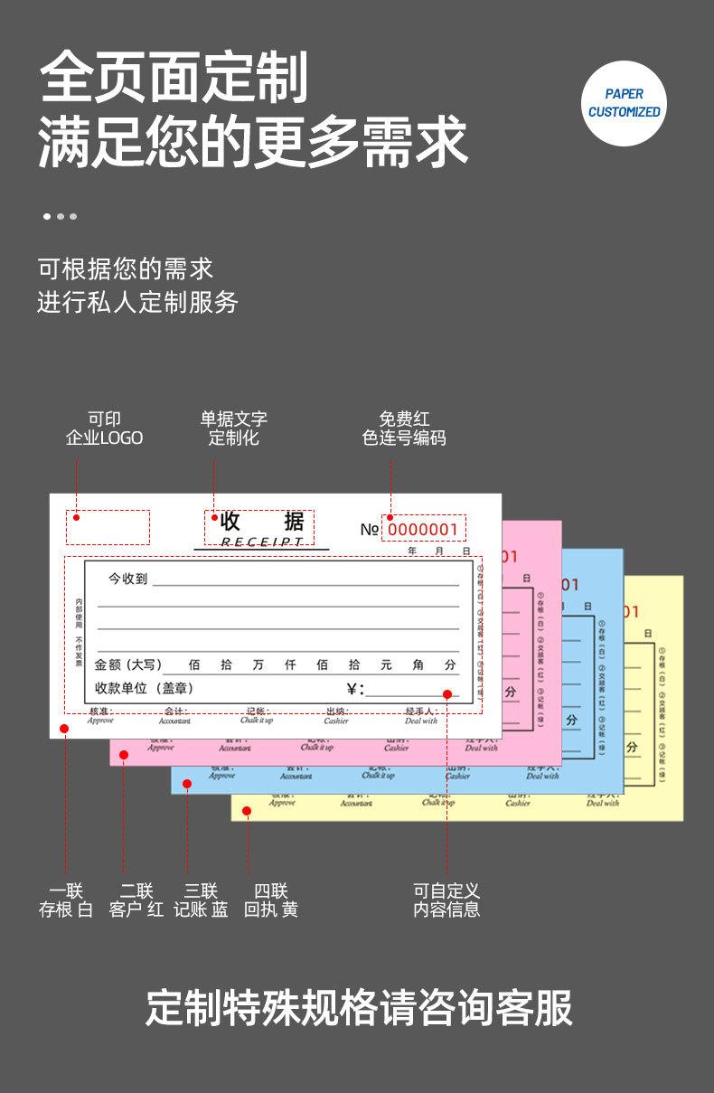 Recibo de una sola columna de dos columnas, este documento de reembolso de efectivo de factura de cobro de varias columnas de tres columnas, fabricantes de papel carbón sin carbón personalizado