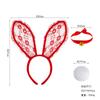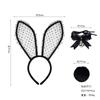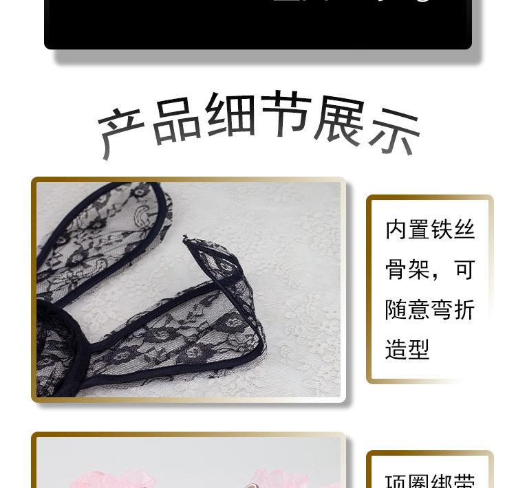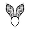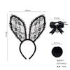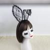 Black peony lace rabbit ears veilless + black lace neck ring + round button needle rabbit velvet black tail