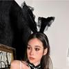Black peony lace rabbit ears without veil, Black peony lace rabbit ears veilless + black lace neck ring + roun...