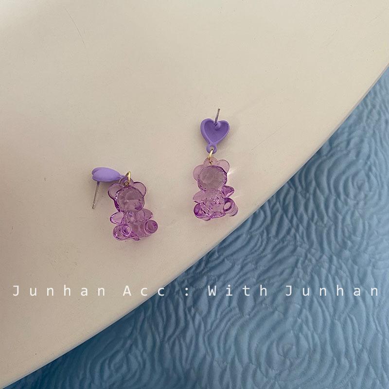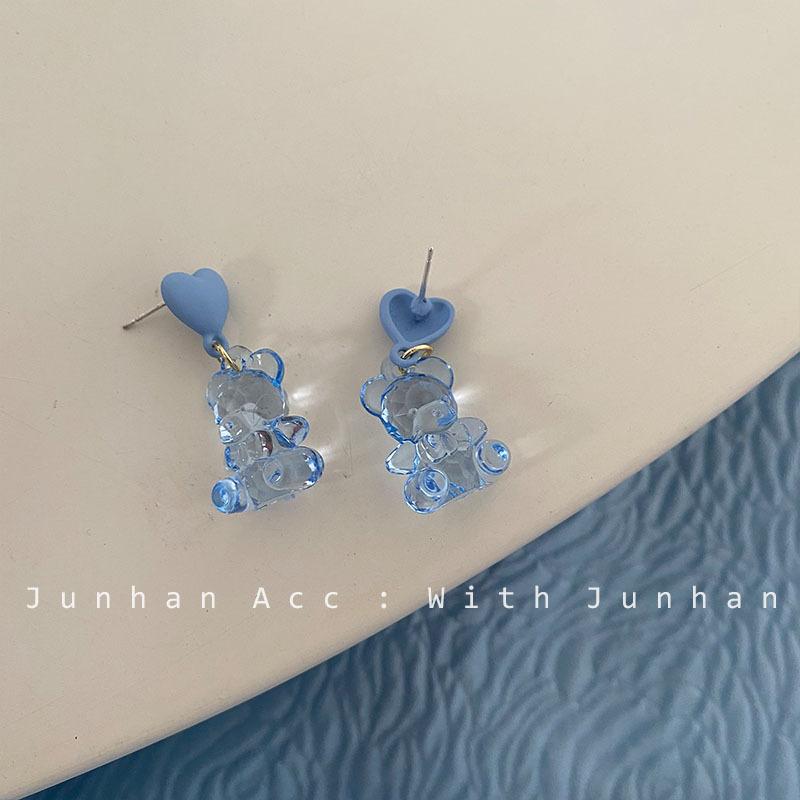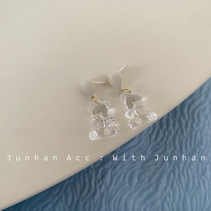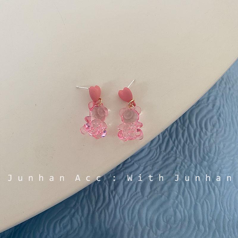 Aretes de Pin de Plata 925 de Oso de Caramelo Coreano INS Lindo Color Transparente Oso Oso Girly Elegante Dulce