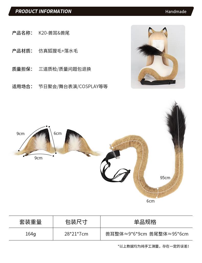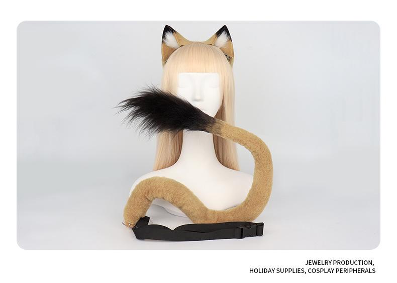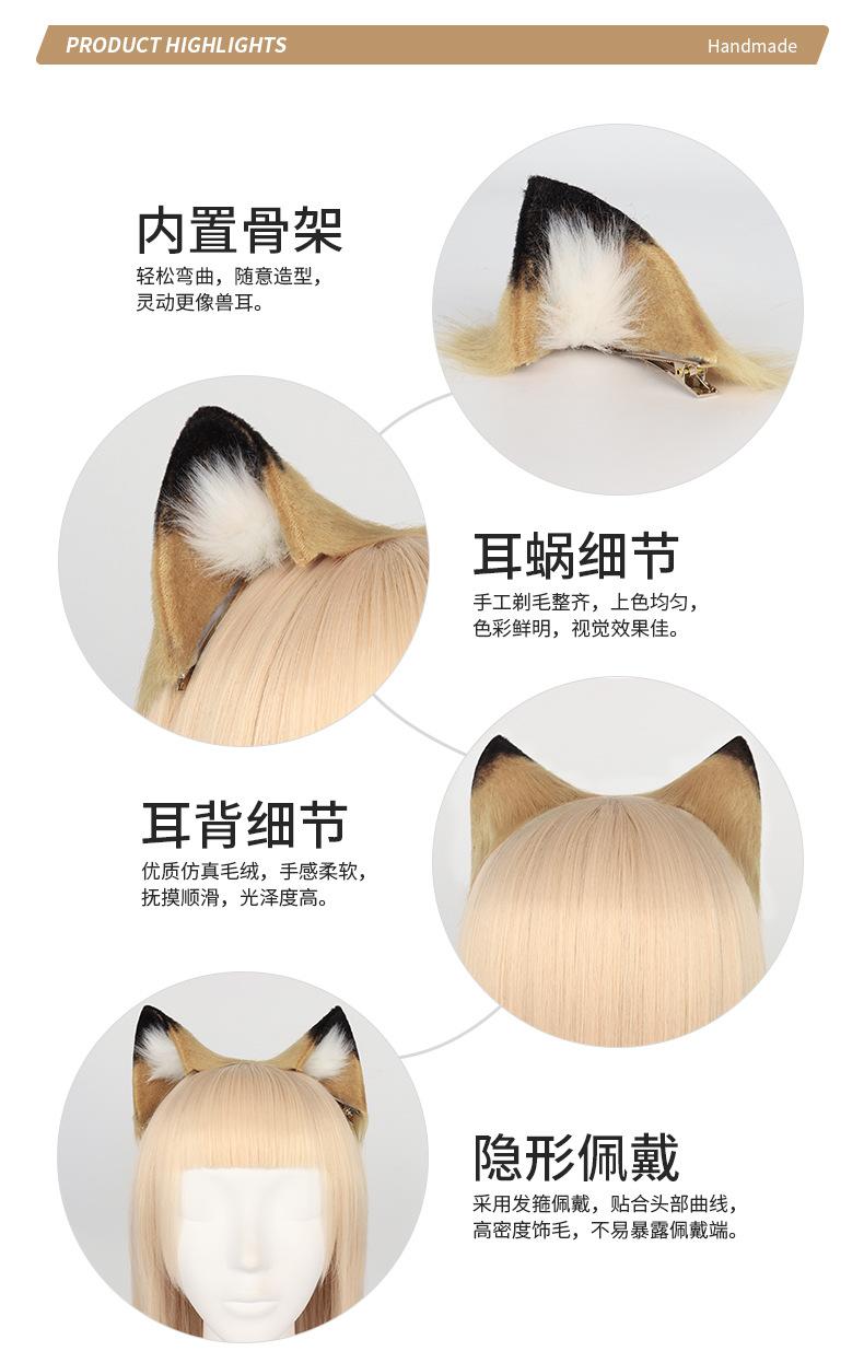 Diadema con orejas de gato simuladas hechas a mano, accesorios de cola de zorro, conjunto de orejas y cola de animal bidimensional, collar y horquilla al por mayor