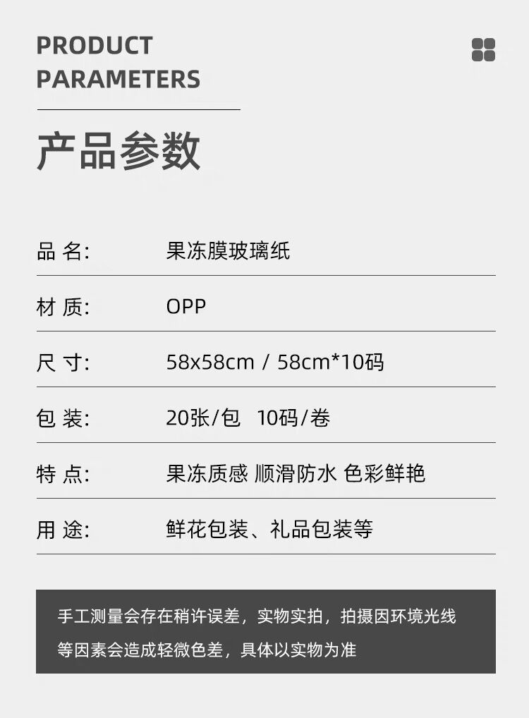 Celofán de colores, película de gelatina OPP, papel de regalo de cristal, bolsa de flores, material de embalaje para ramos, material transparente impermeable.