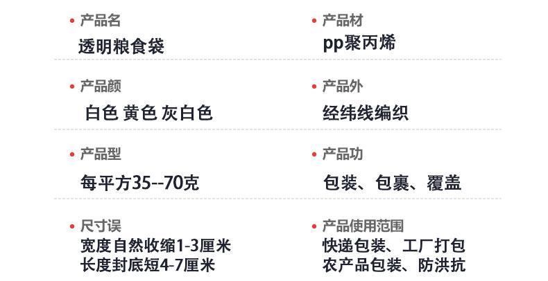 Yellow transparent 60*104(50kg soybean bag), Yellow transparent 65*109(60kg soybean bag), Grey 60*104(50kg cor...