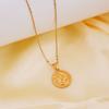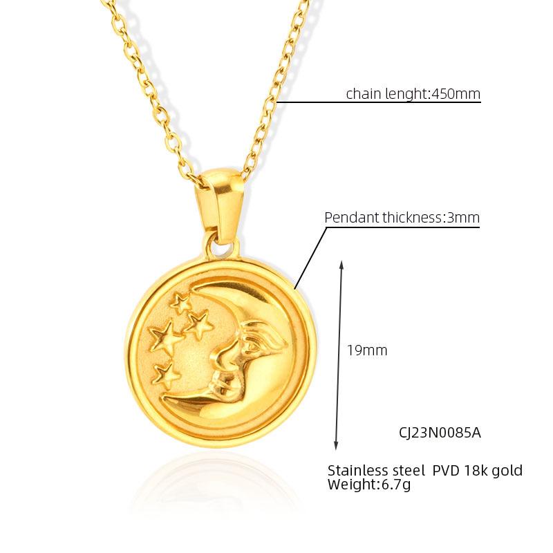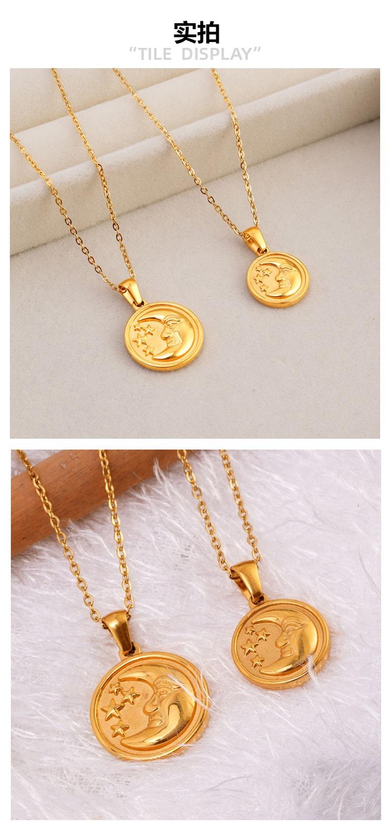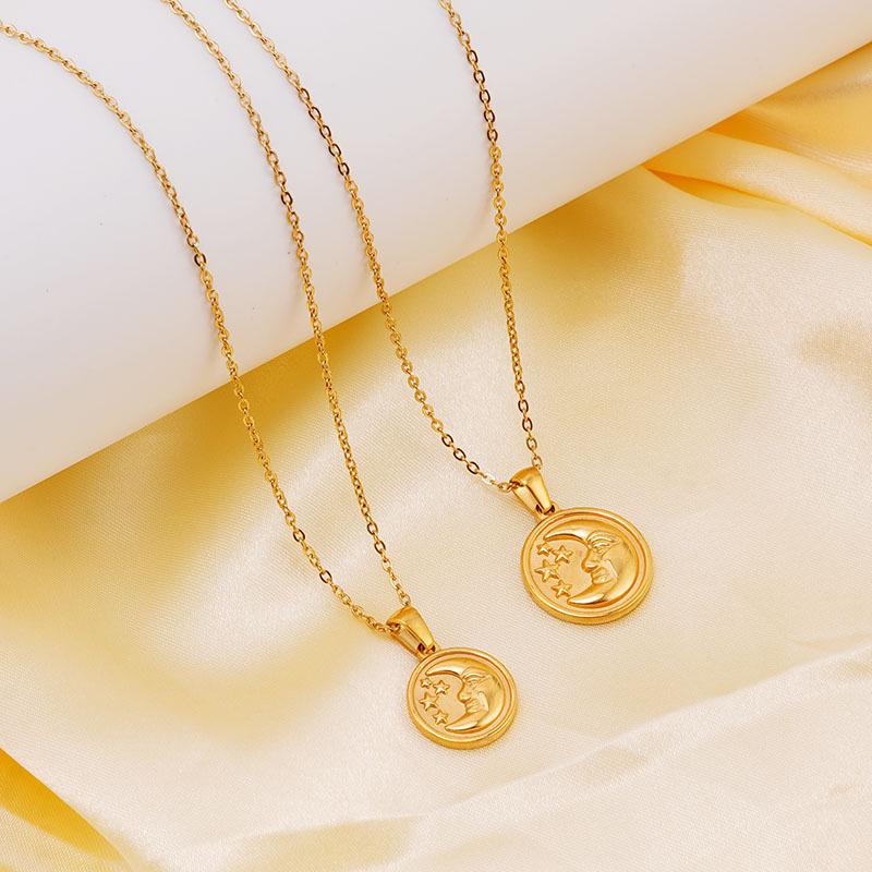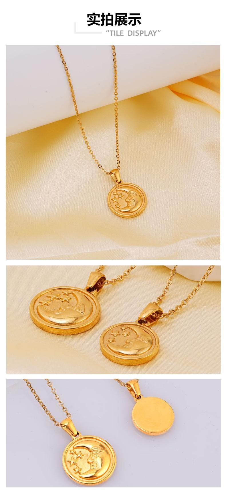 Collar Europeo y Americano Transfronterizo de Acero de Titanio Francés para Mujer, Moda Sencilla, Colgante Redondo de Estrella y Luna, Oro Rojo Popular, Cadena para Clavícula