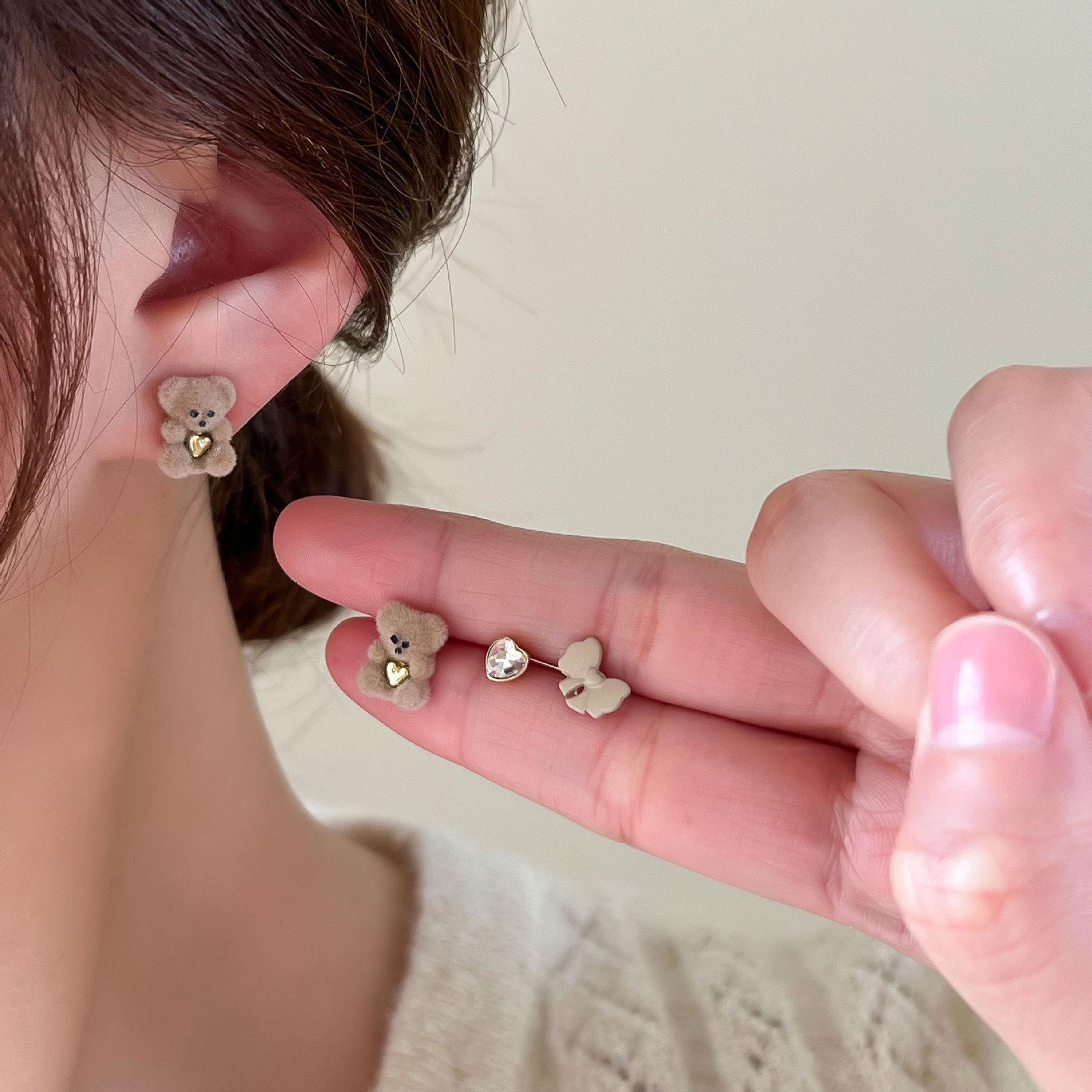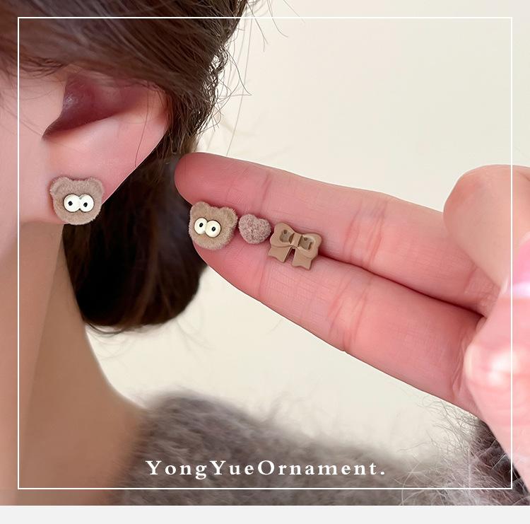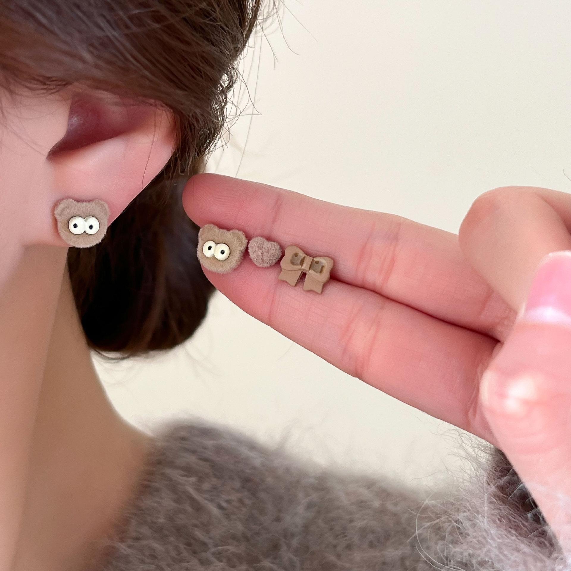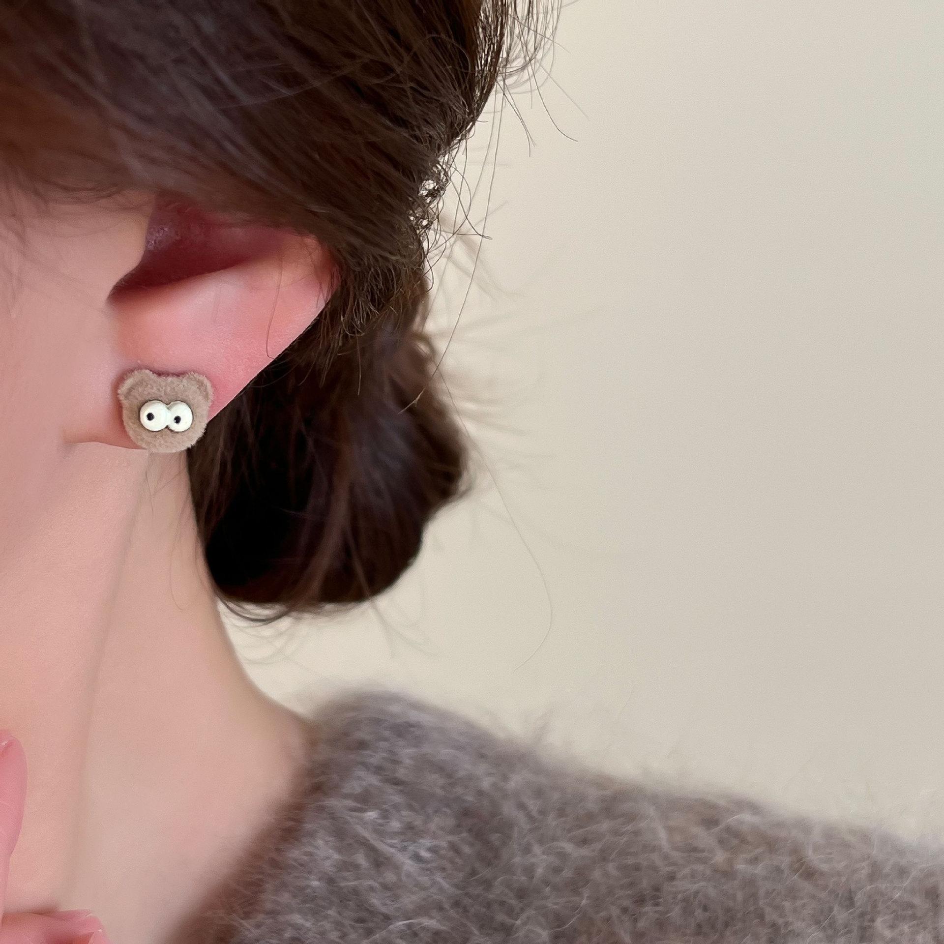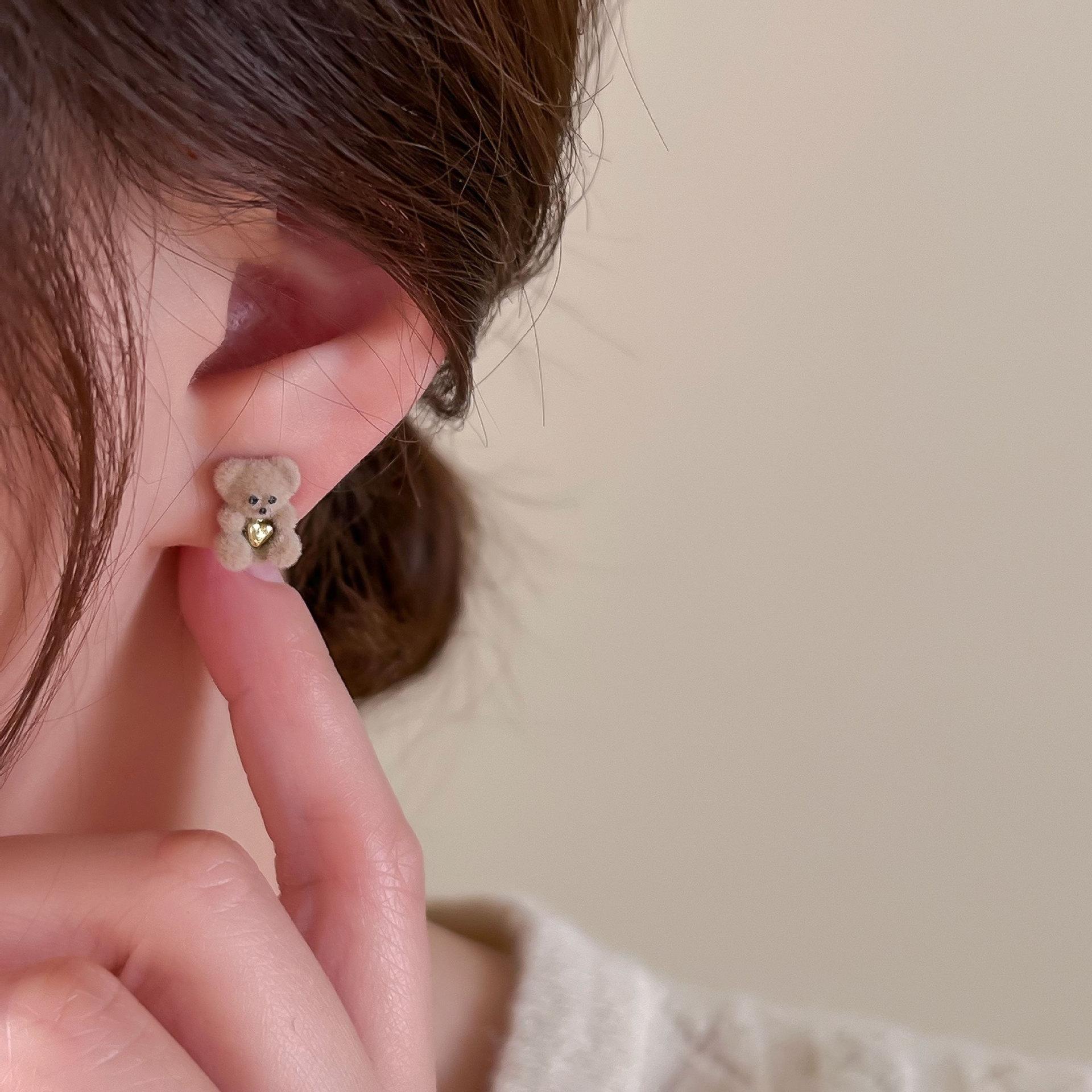 Pendientes de Oso Adorables con Flocado de Aguja S Otoño e Invierno 2023 Nuevos Pendientes Lujo Accesible para Mujer Pendientes Versátiles
