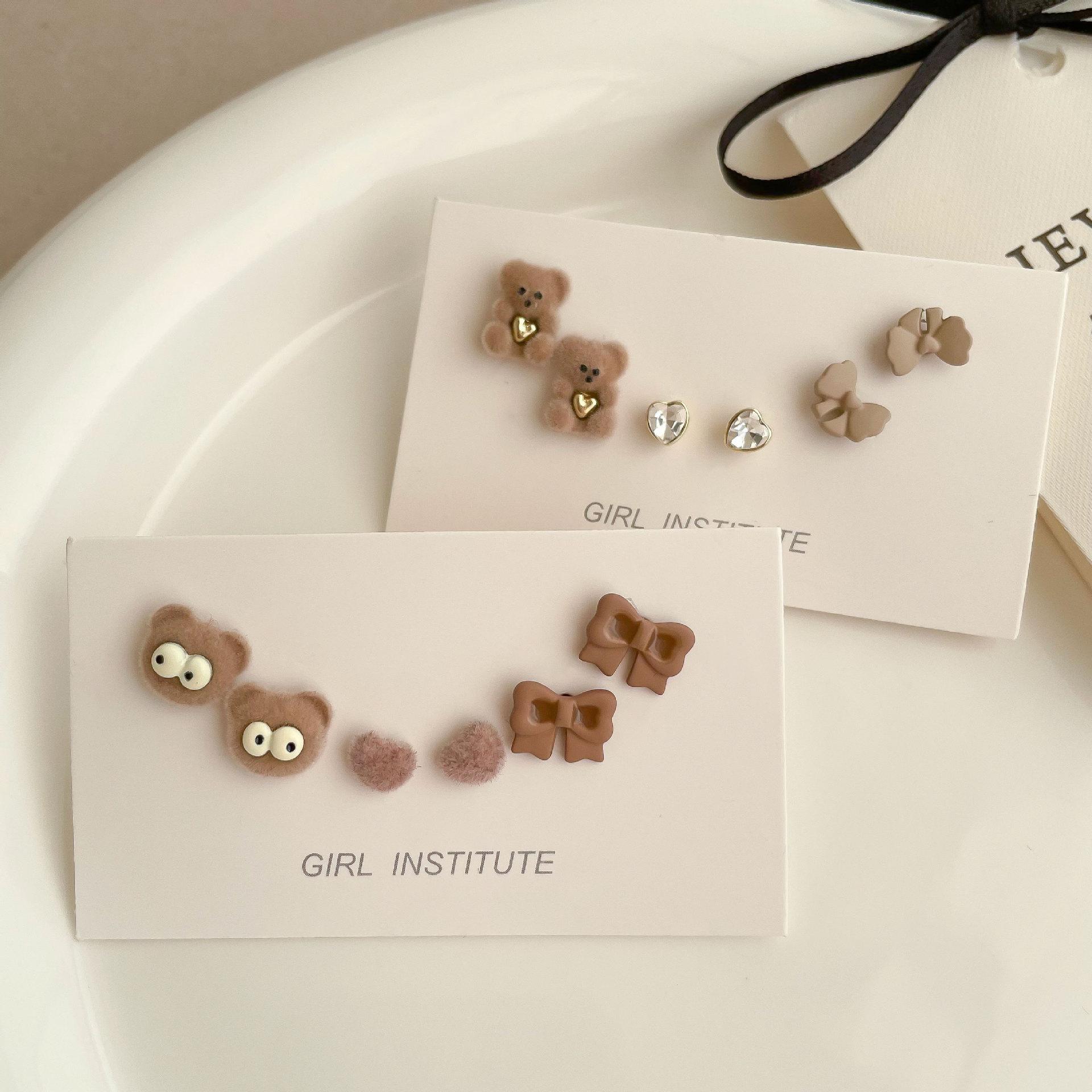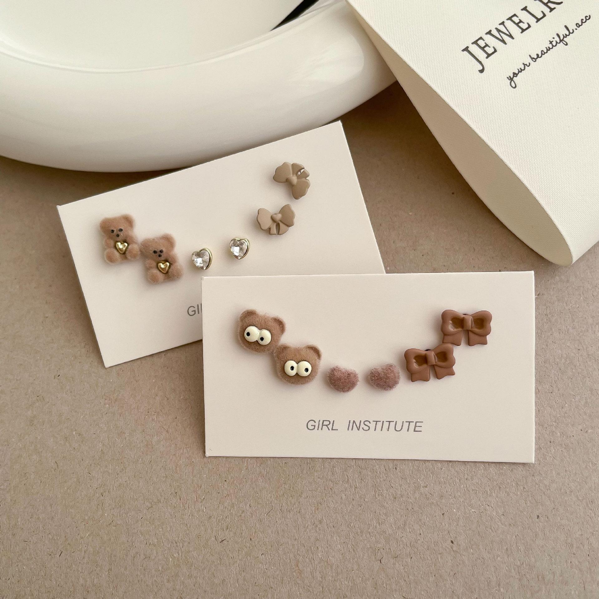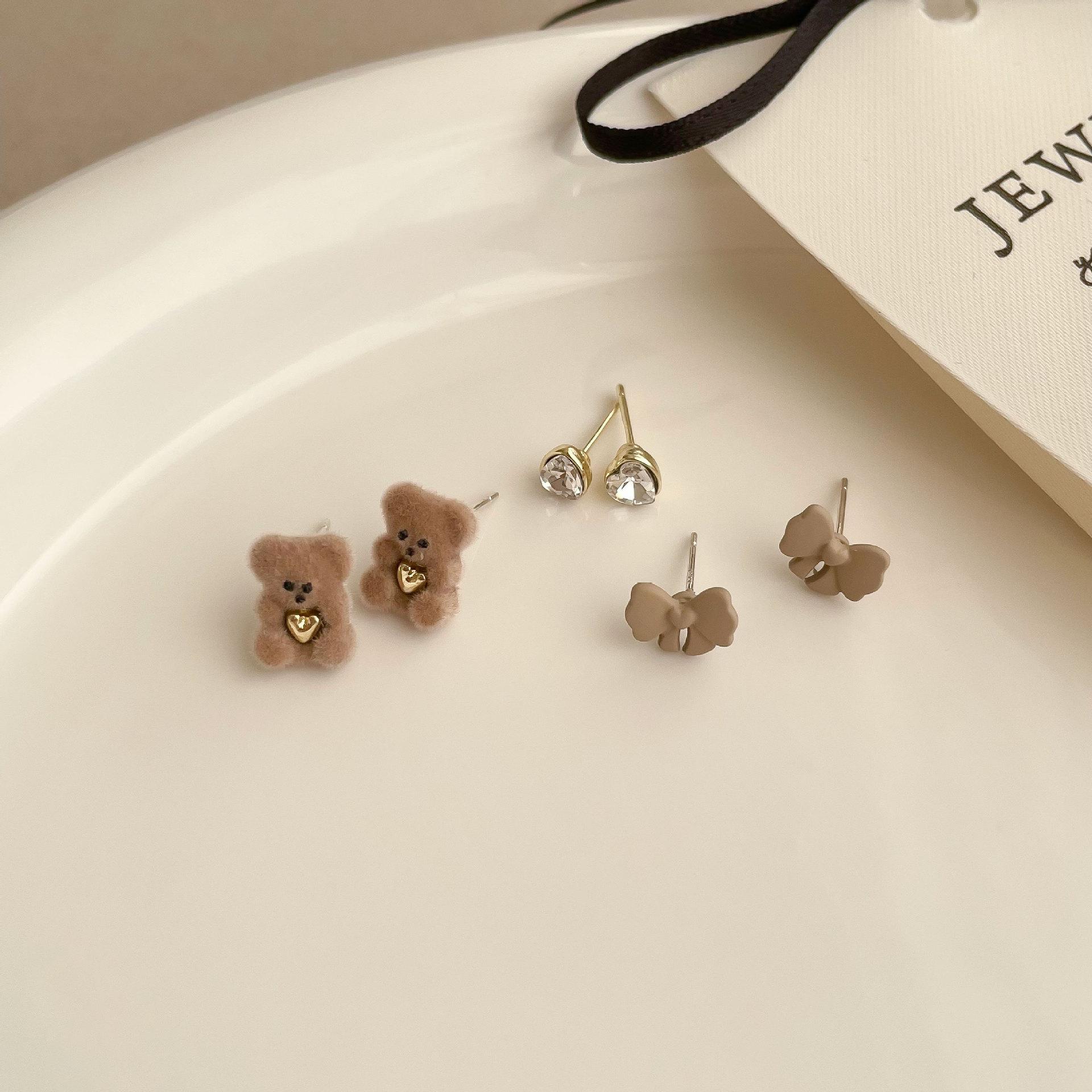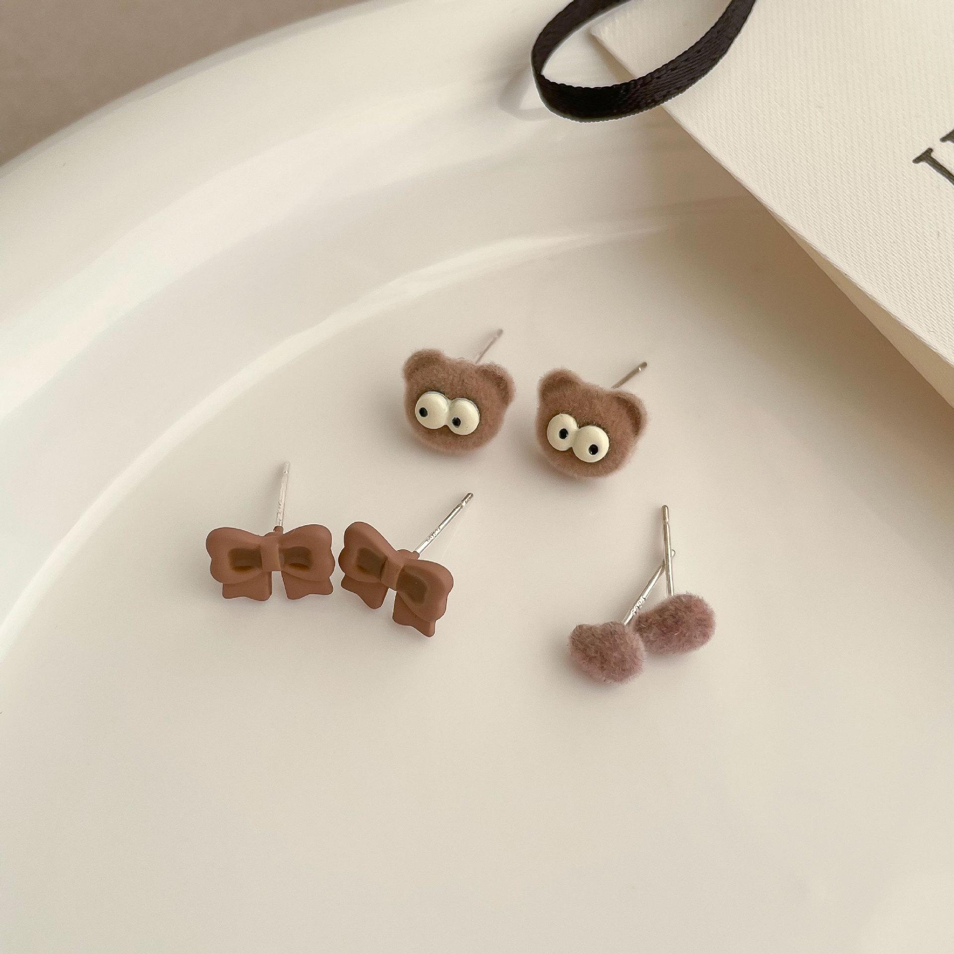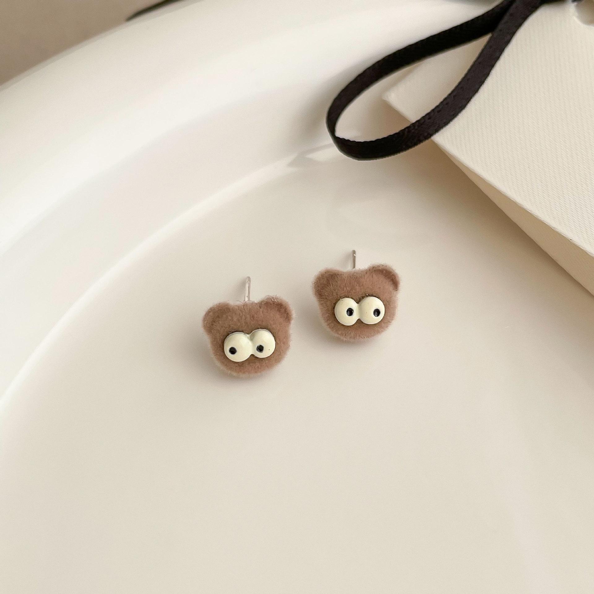 Pendientes de Oso Adorables con Flocado de Aguja S Otoño e Invierno 2023 Nuevos Pendientes Lujo Accesible para Mujer Pendientes Versátiles